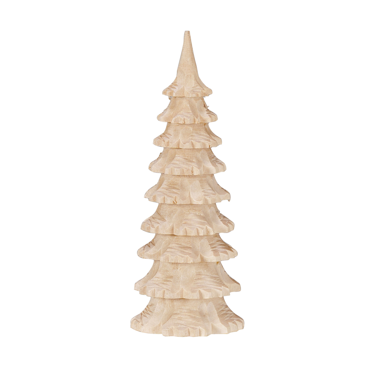 This natural, carved wood tree is a beautiful and convenient way to decorate for the holidays. It features a carved wood tree with a natural color and a cone shape that creates a rustic and authentic effect, making it look like a real tree. The tree has a solid and textured texture that is pleasant to touch and look at. The tree is ideal for displaying on a table, shelf, or mantel, where it can add a touch of nature and tradition to the space. The tree is made of solid, durable, and natural basswood, making it a great choice for holiday decoration. It measures 2.25 inches in diameter and 6.5 inches in height, making it a noticeable and attractive centerpiece. Elevate the holiday decor with this eye-catching Christmas tree, adding both style and a touch of whimsy. A carved wood tree with a natural color and a cone shape that creates a rustic and authentic effect. A classic and timeless addition to the holiday decor, this tree adds a touch of nature and tradition to any space. Ideal for displaying on a table, shelf, or mantel, this tree can be used as a standalone piece or paired with other items.