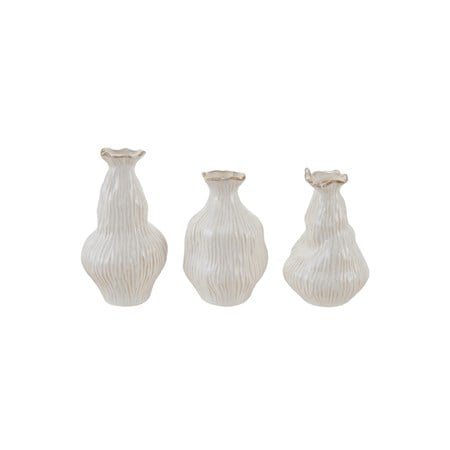 Catalog Name: 3-1/4" Round x 6-1/2"H, 2-1/2" Round x 6"H & 3-1/4" Round x 4"H Recycled Glass Vases, Marbled Amber Color, Set of 3