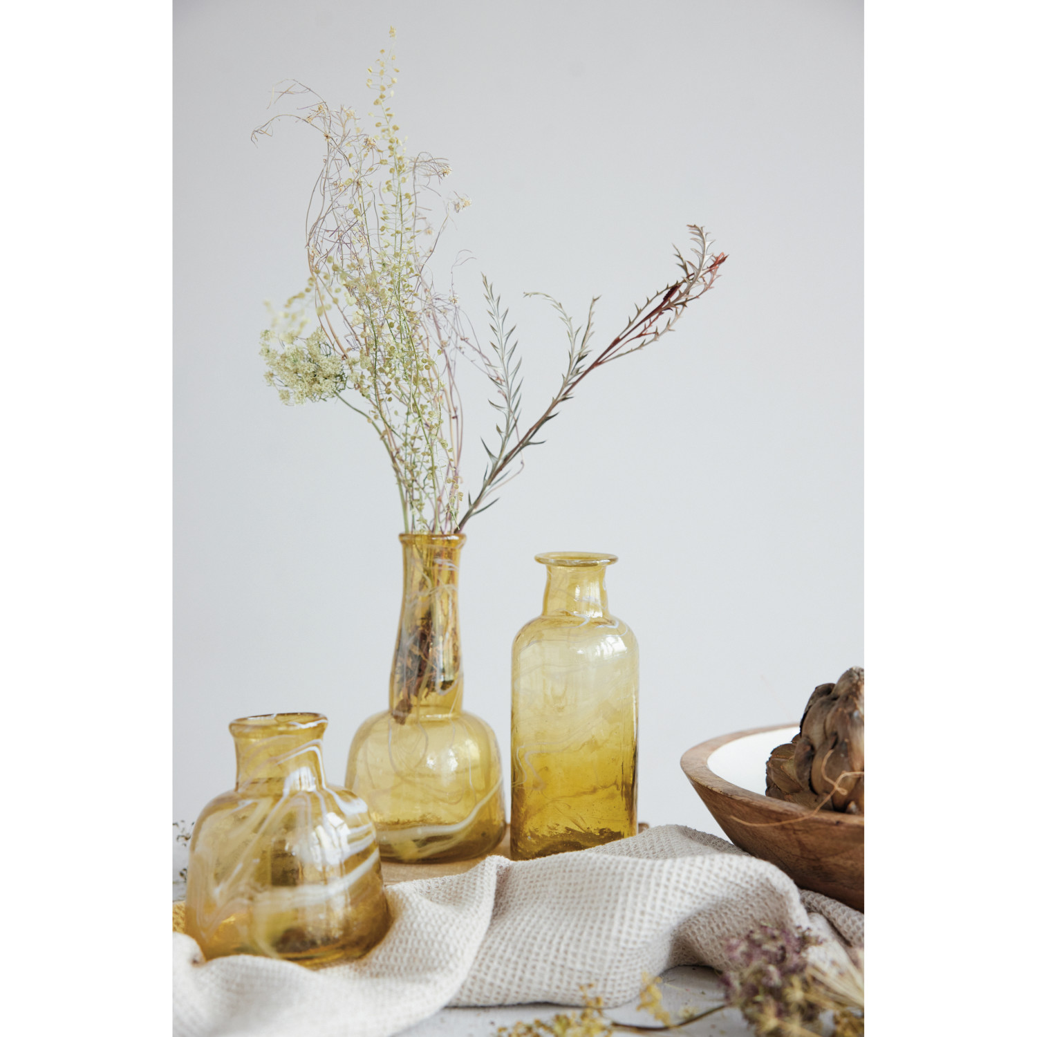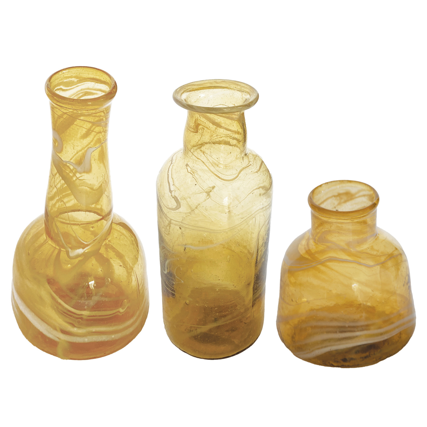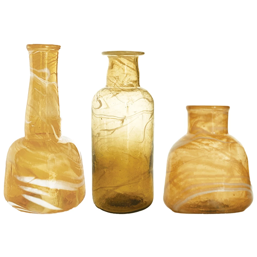 Recycled Glass Vases, Marbled Amber Color, Set of 3
