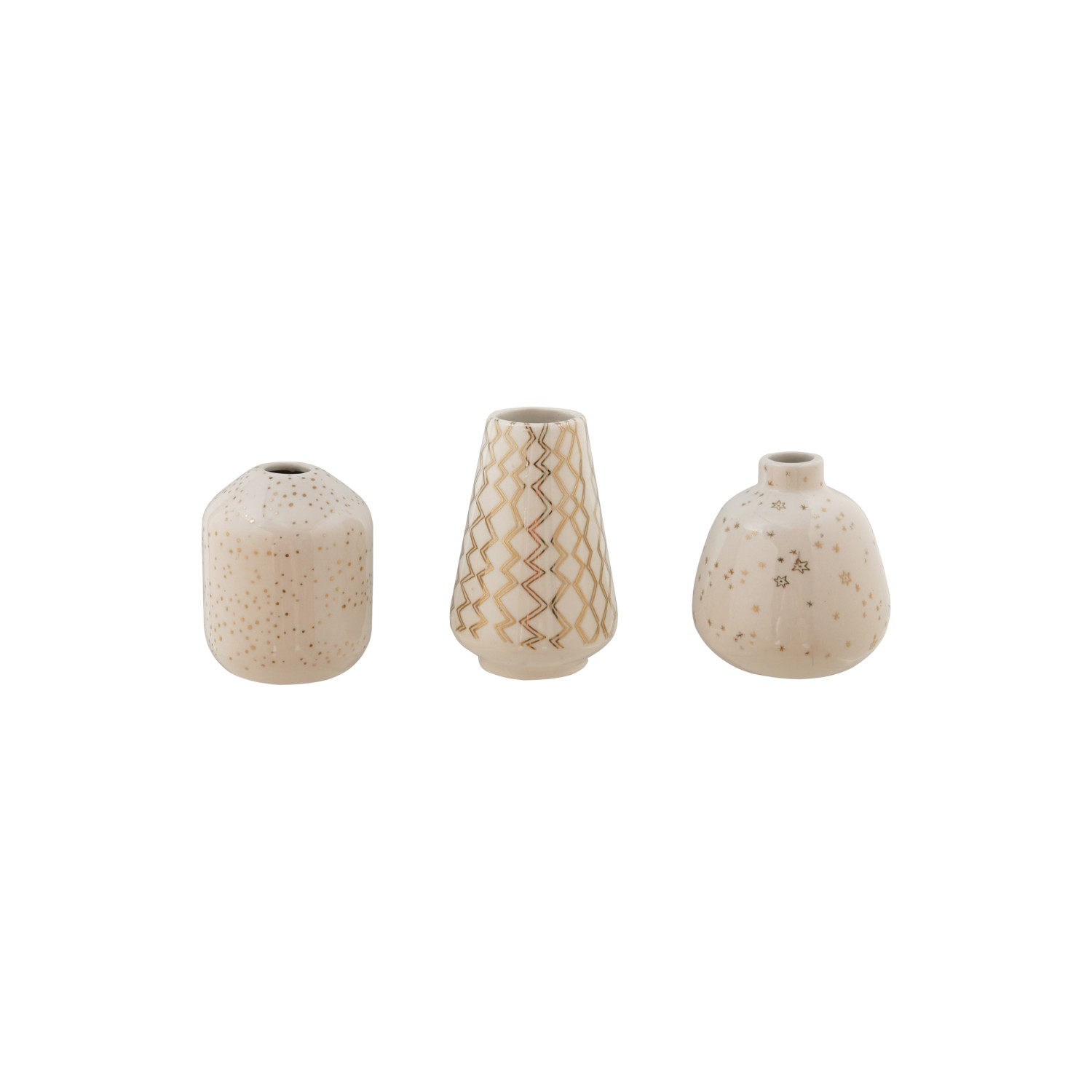 Catalog Name: 3"H - 4"H Stoneware Vase w/ Gold Electroplated Design, White, 3 Styles