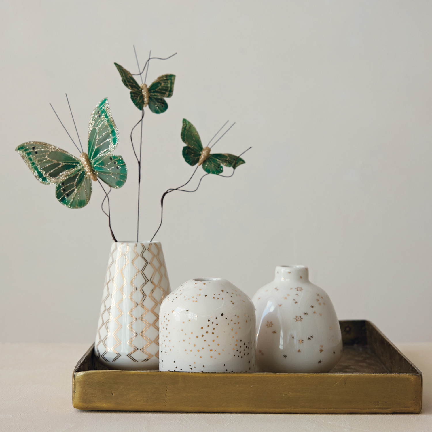 Stoneware Vase with Gold Electroplated Design, White, 3 Styles