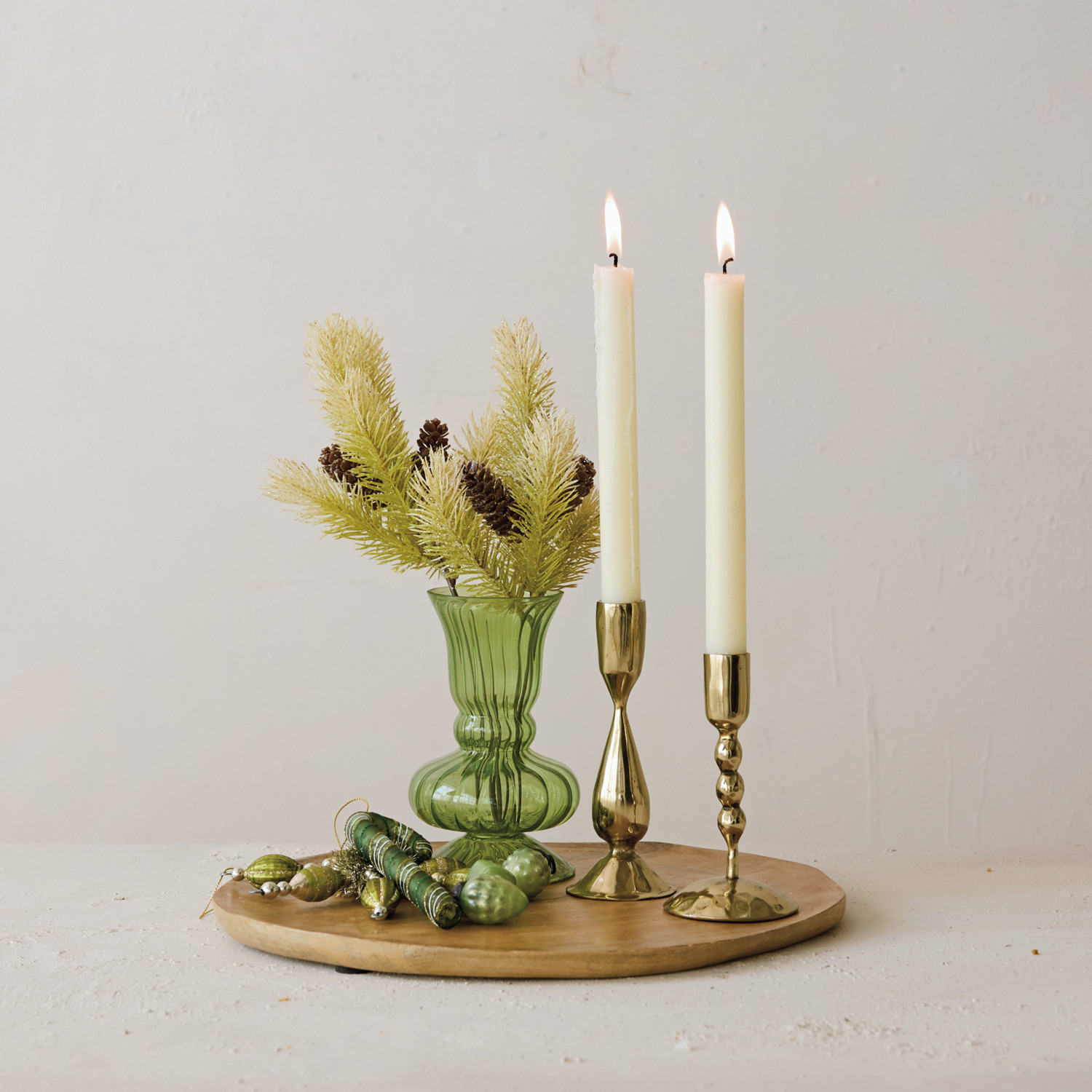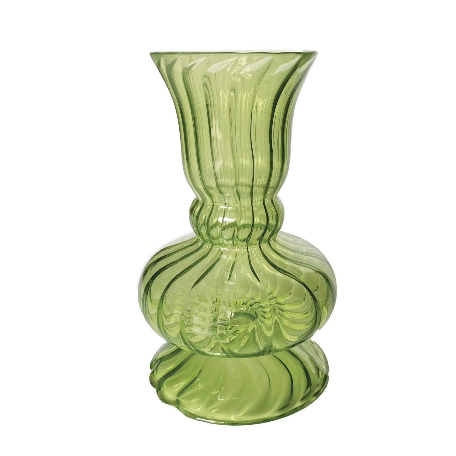 Hand-Blown Fluted Glass Vase, Green