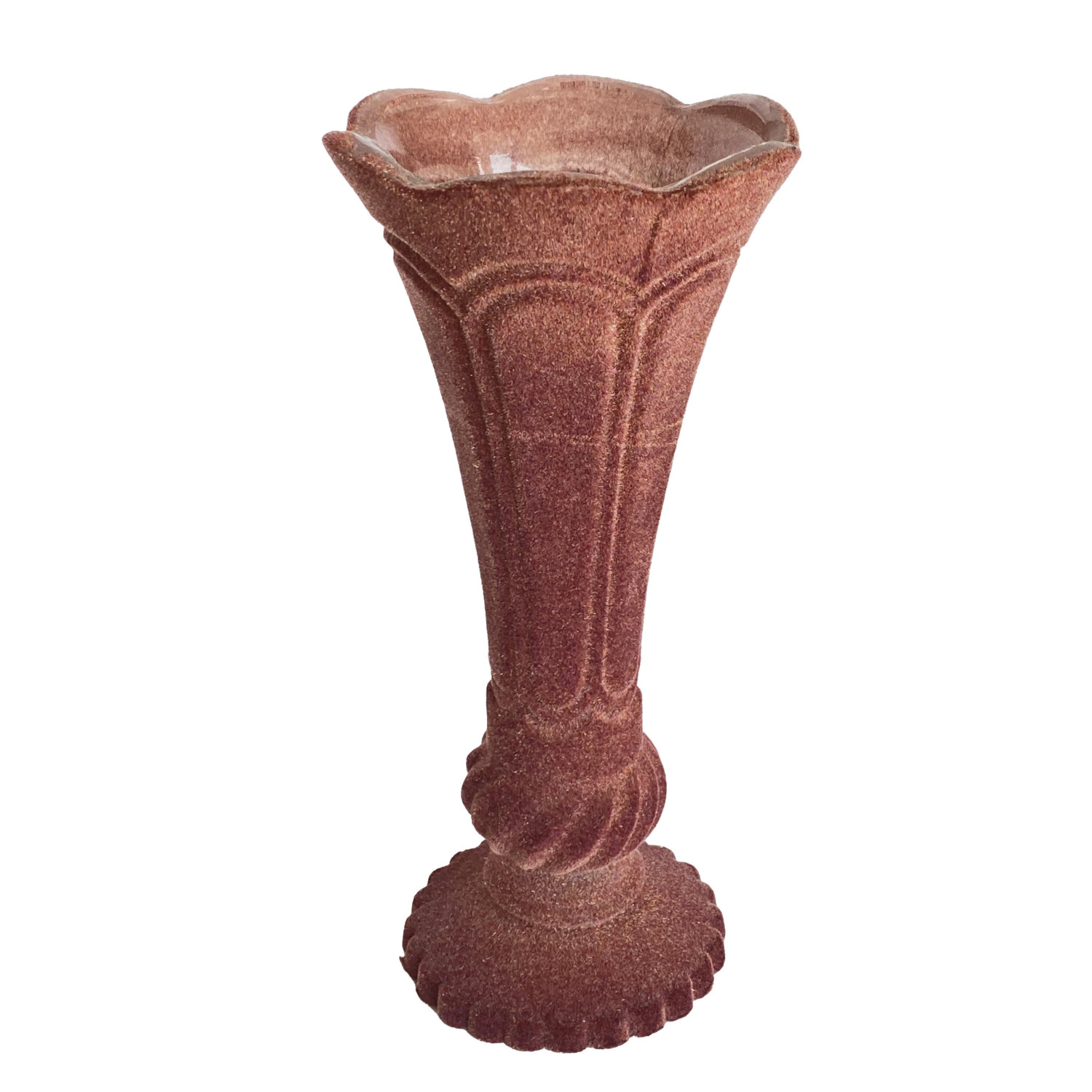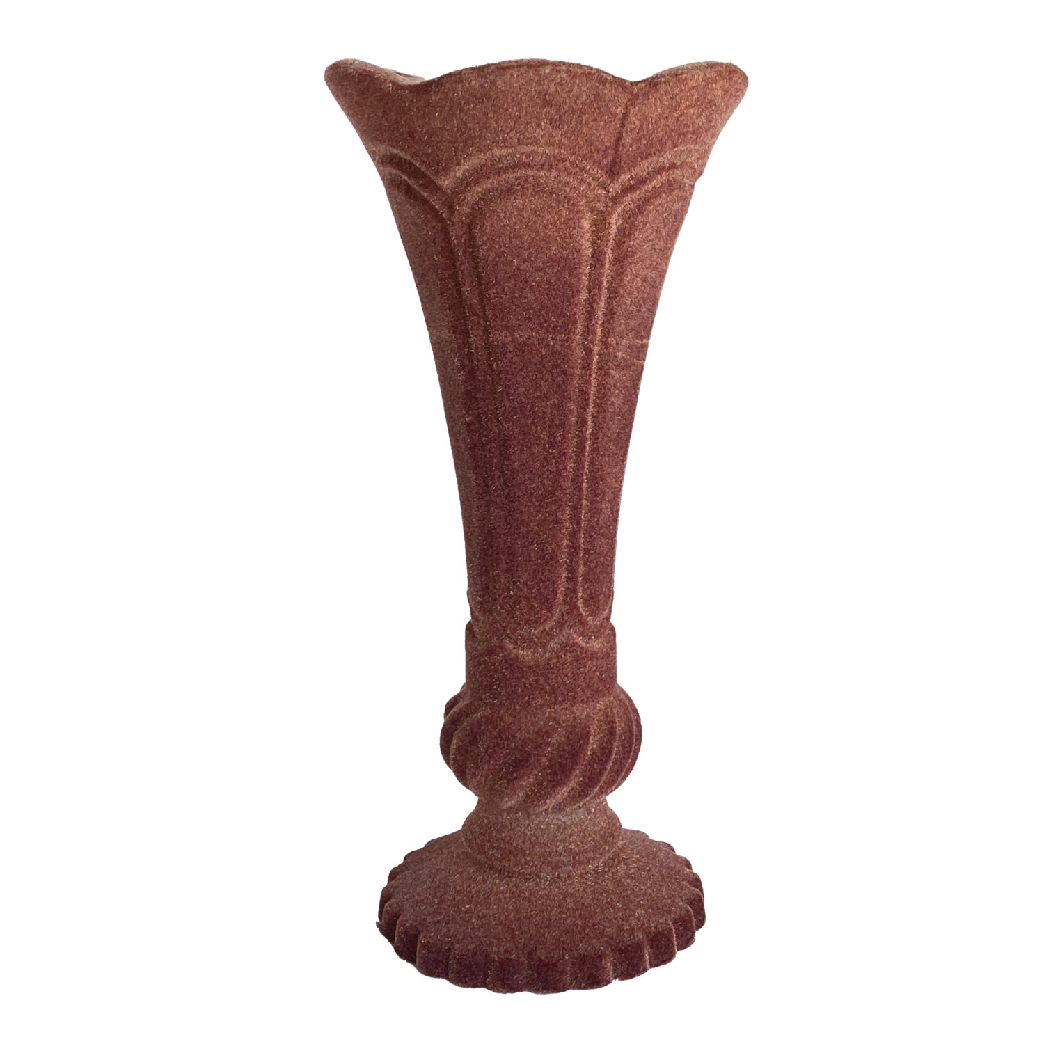 Embossed Flocked Glass Footed Vase with Scalloped Rim, Plum Color