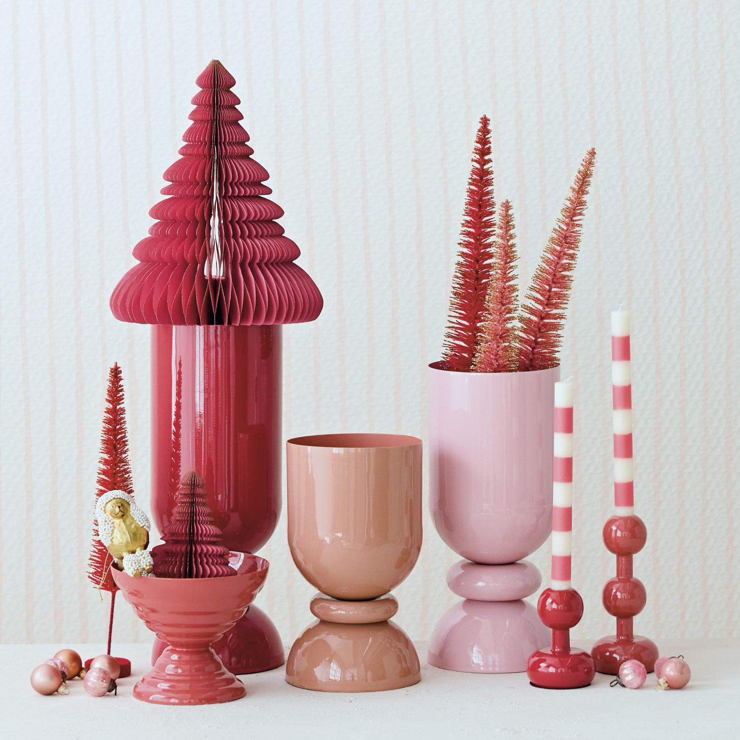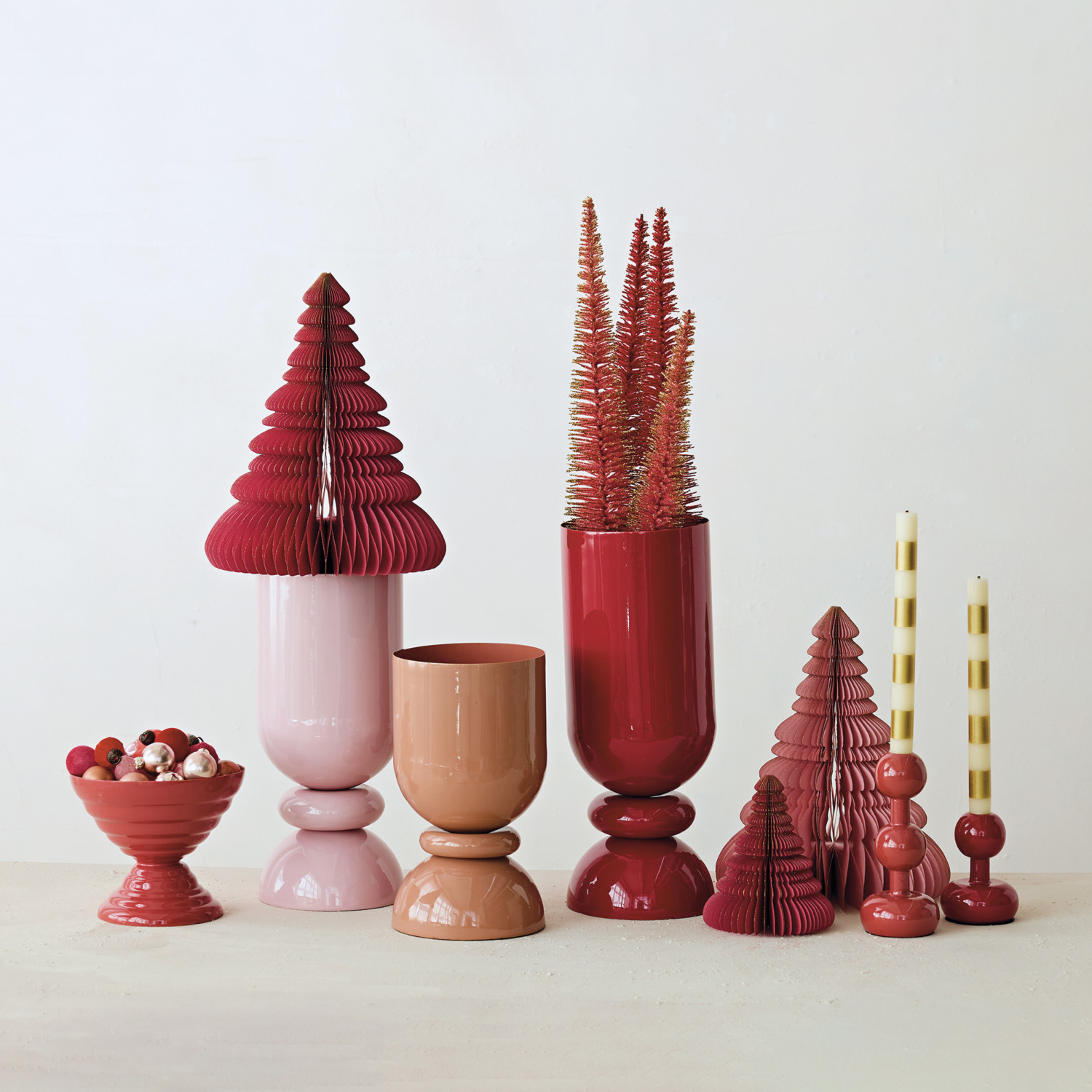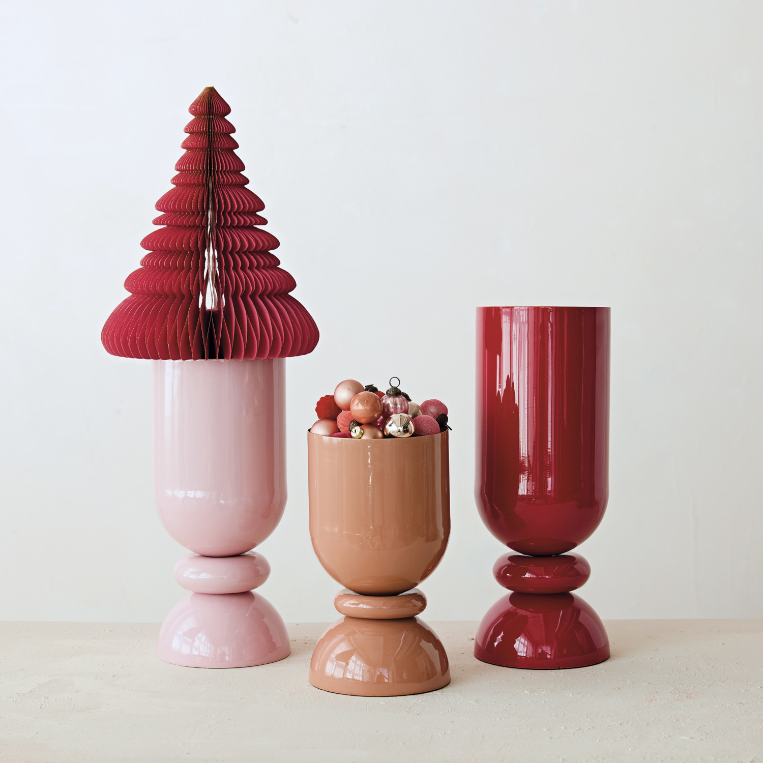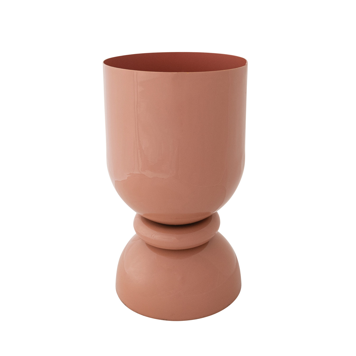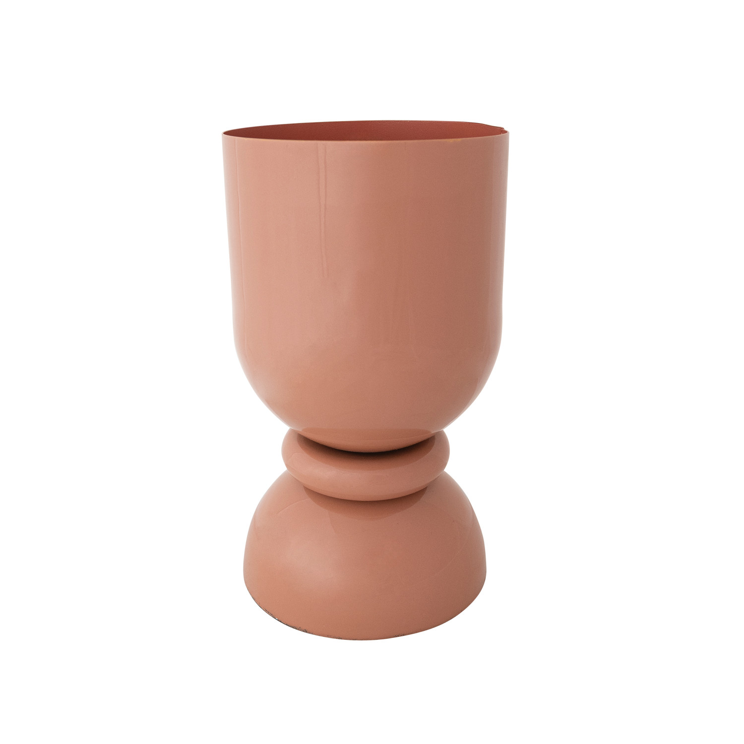 Catalog Name: 6" Round x 10-3/4"H Enameled Metal Footed Vase, Blush Color