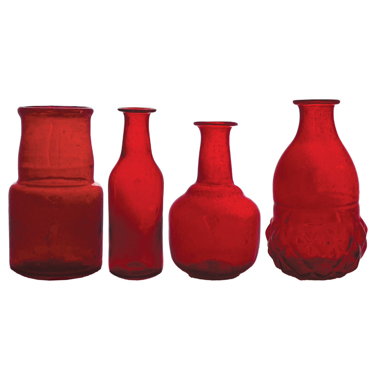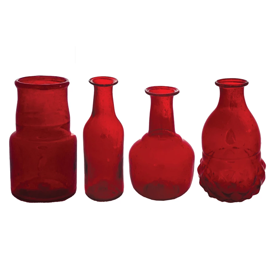 Catalog Name: 3-1/2"H - 5"H Hand-Blown Glass Vase, Red, 4 Styles