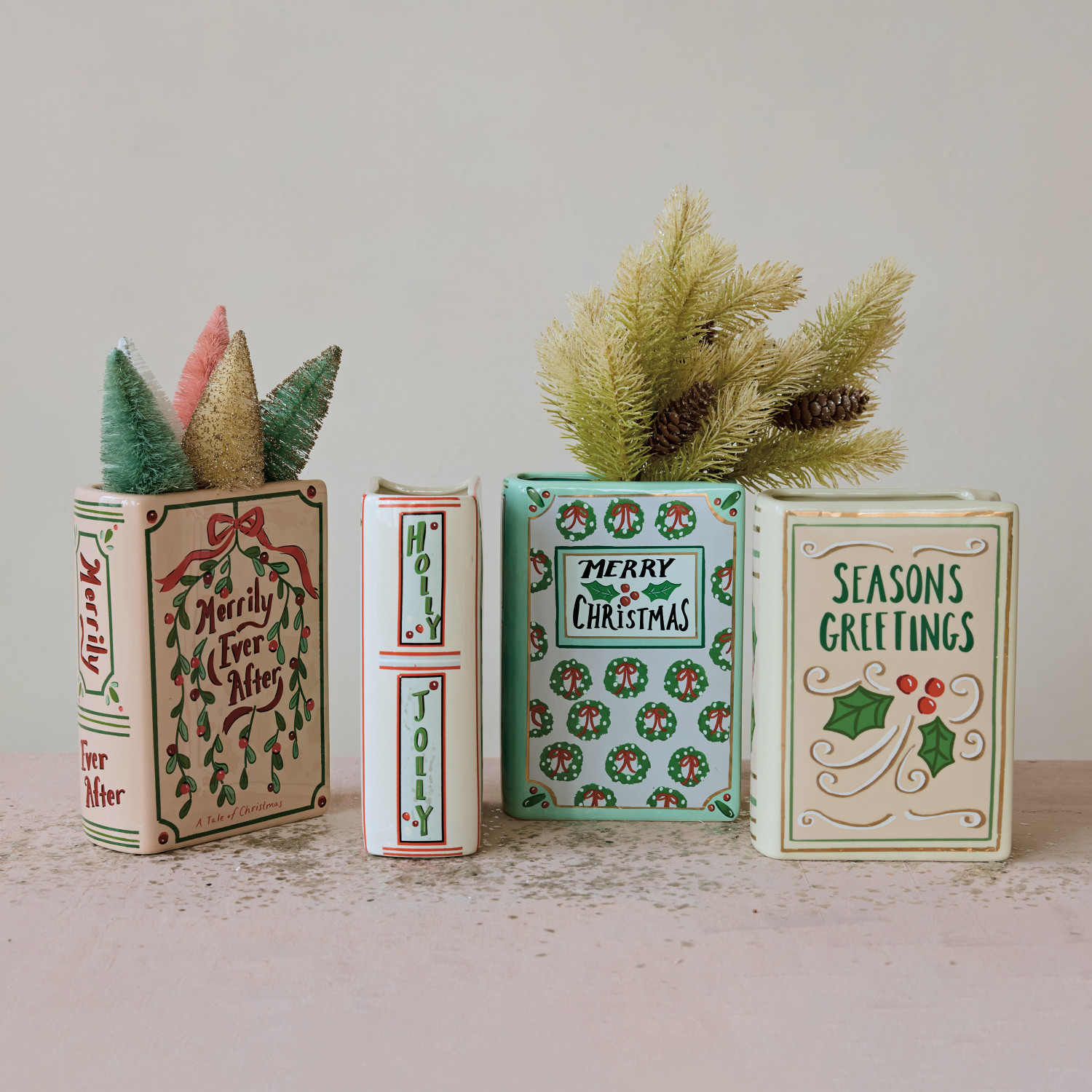 Ceramic Holiday Book Shaped Vase, 4 Styles ©
