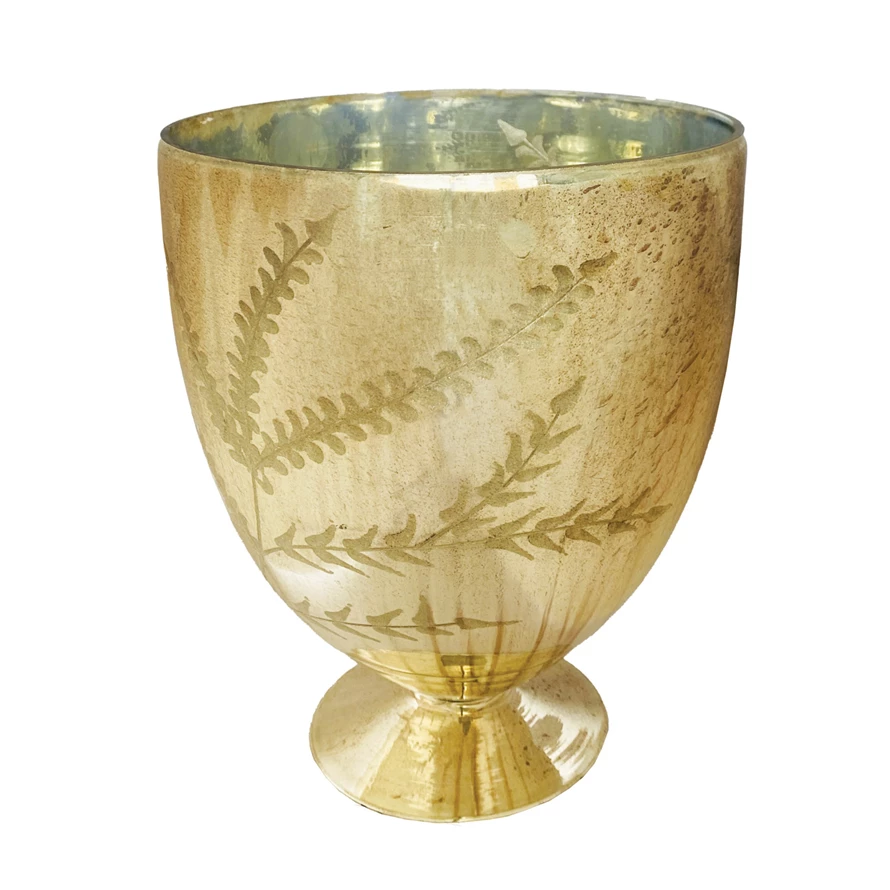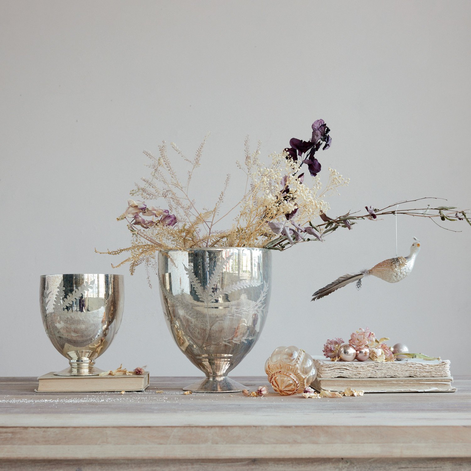 Etched Mercury Glass Footed Vase, Antique Silver Finish
