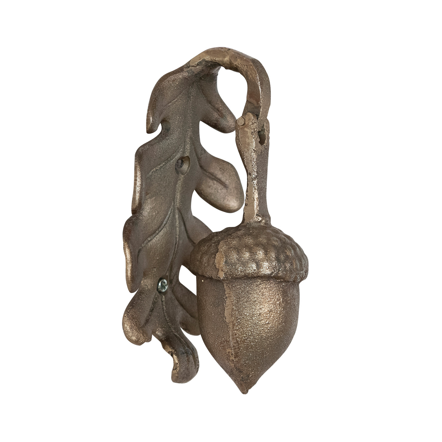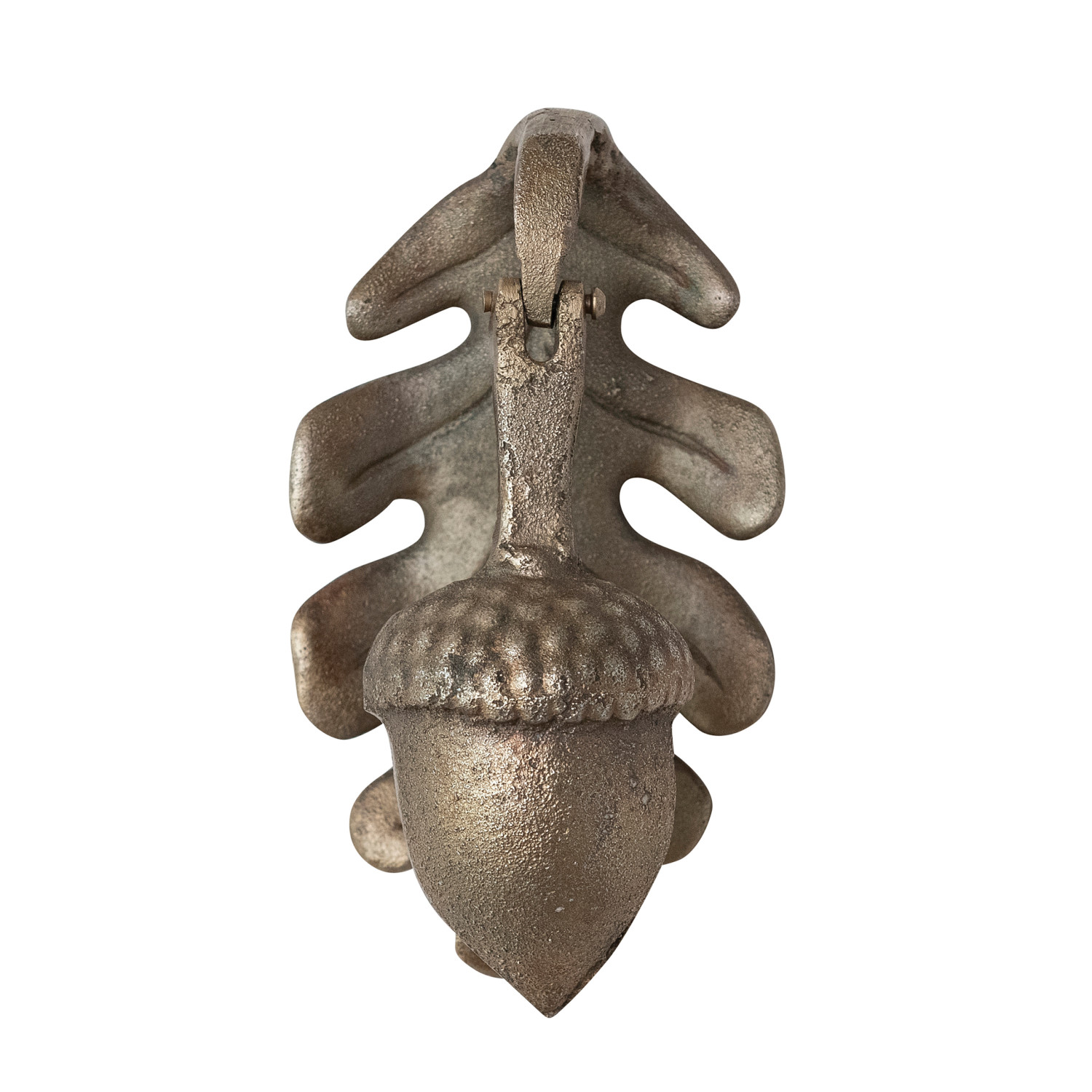 Catalog Name: 3-1/2"W x 2-1/2"D x 6-1/4"H Cast Iron Leaf & Acorn Shaped Door Knocker, Antique Gold Finish