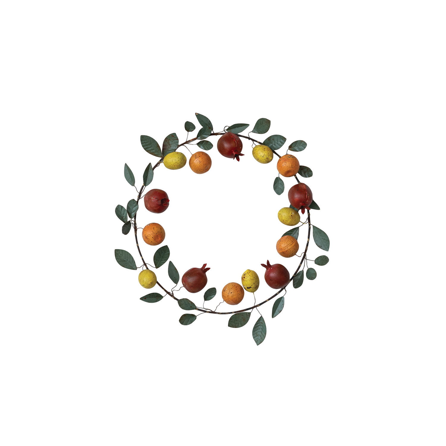 Catalog Name: 18" Round Hand-Painted Metal Vintage Reproduction Toleware Leaves & Fruit Wreath, Multi Color