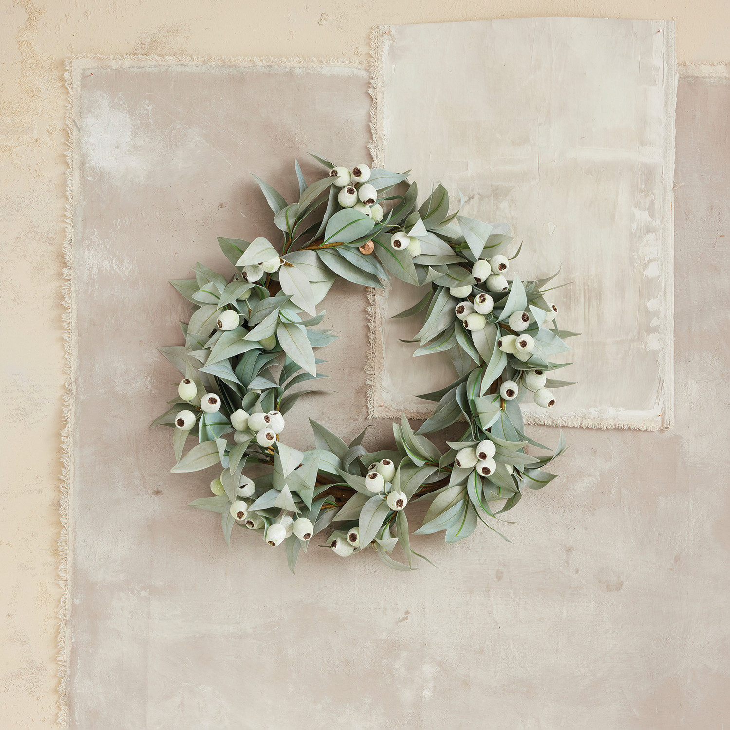 23" Round Faux Silver Gumnut Wreath