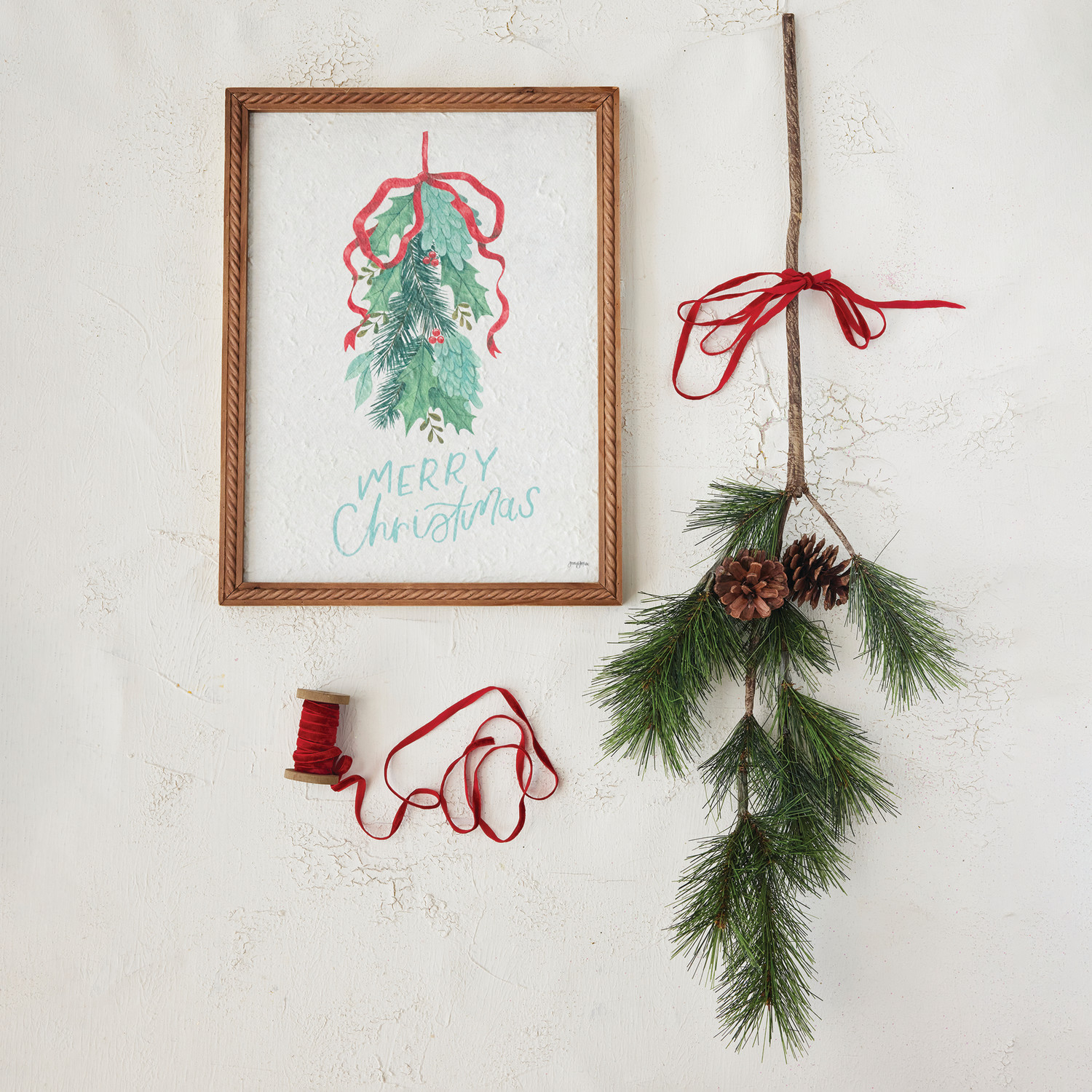 Catalog Name: 12-1/2"W x 16-1/4"H Wood Framed Wall Décor w/ Holly & Bow "Merry Christmas", Multi Color