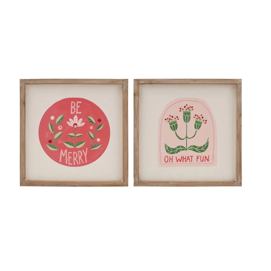 Wood & MDF Framed Wall Decor with Holiday Botanicals & Saying, 2 Styles ©