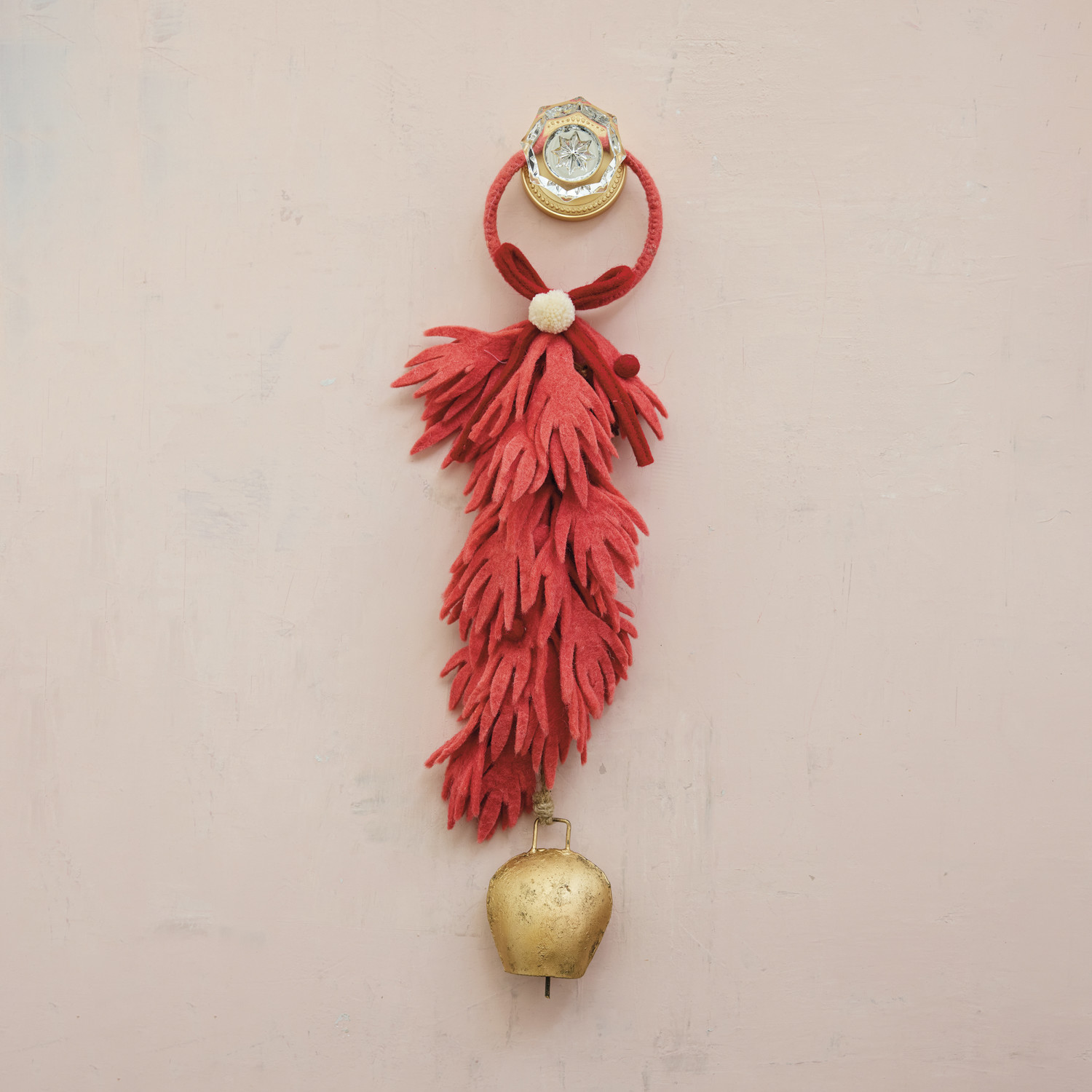 Handmade Wool Felt Leaves & Berries Door Hanger with Metal Bell