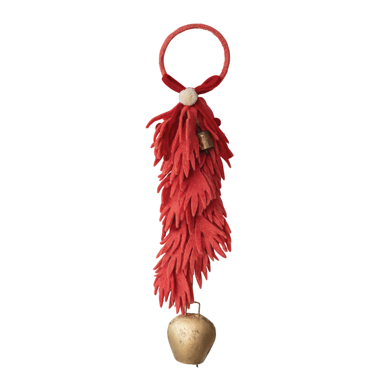 Catalog Name: 4"W x 20-1/2"H Handmade Wool Felt Leaves & Berries Door Hanger w/ Metal Bell, Multi Color