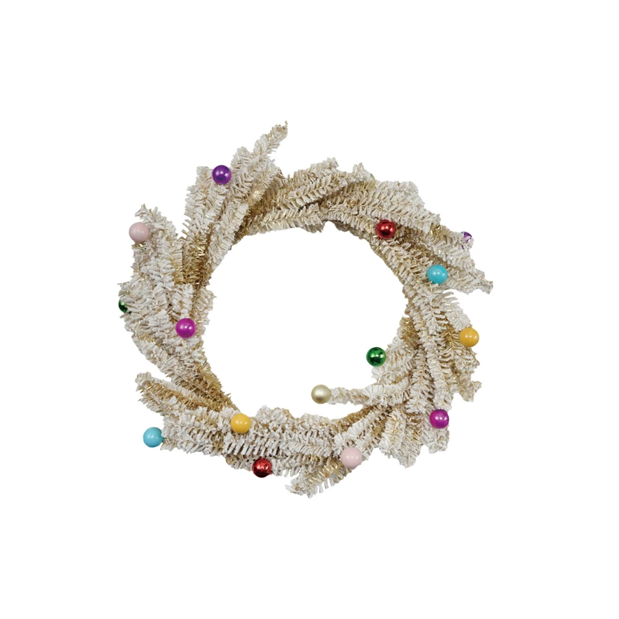 18" Round Plastic Wreath with Ball Ornaments, Snow Finish