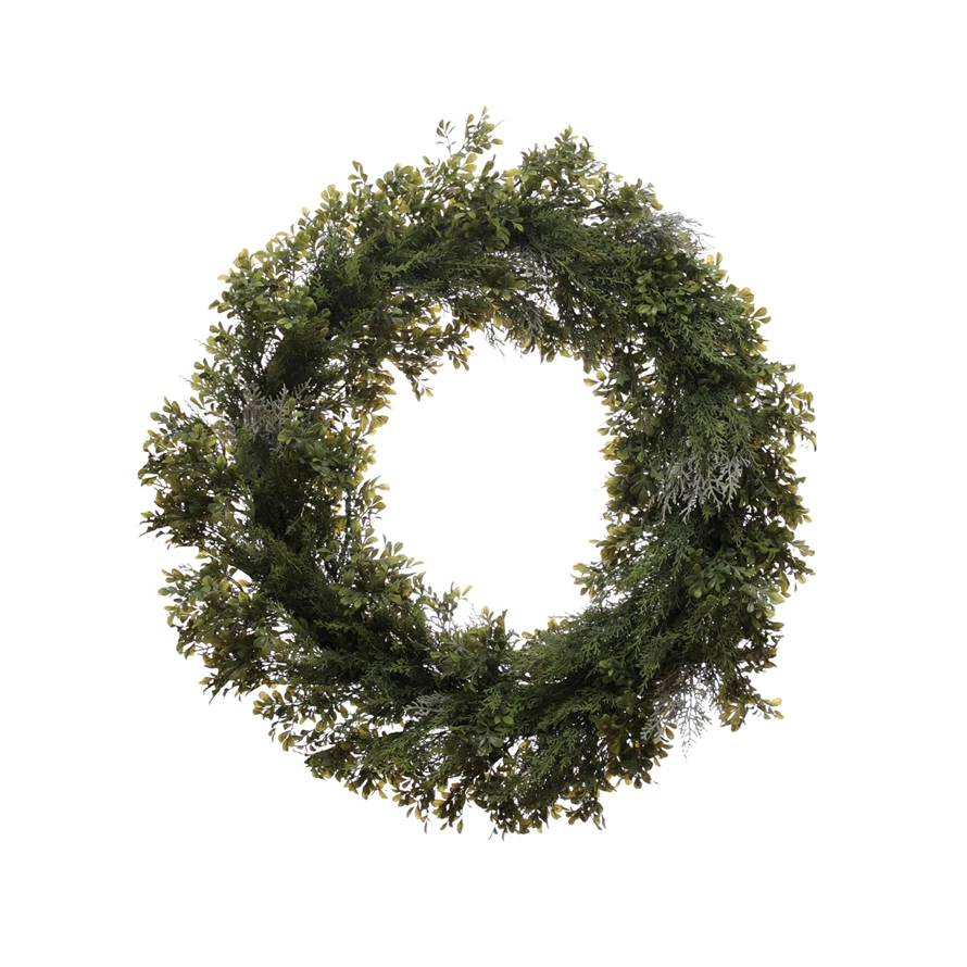 Faux Boxwood, Cedar & Juniper Wreath, Frost Finish