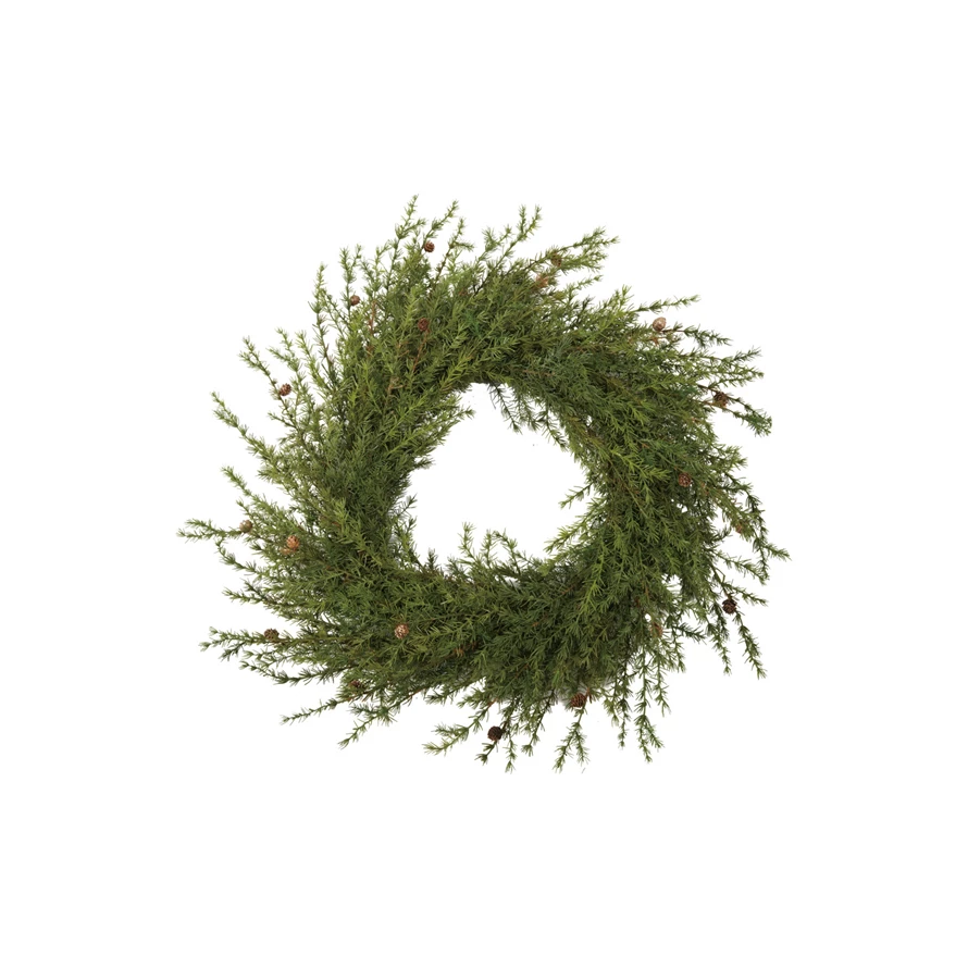 55" Round Faux Cedar Wreath with Natural Pinecones