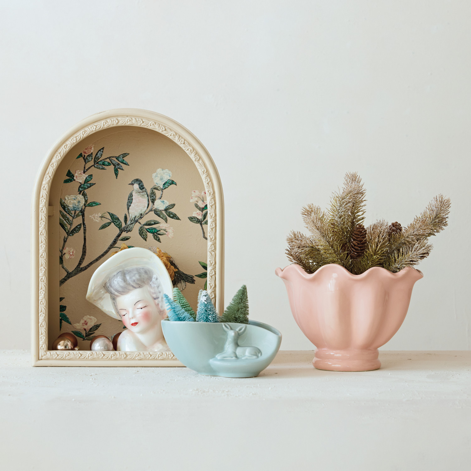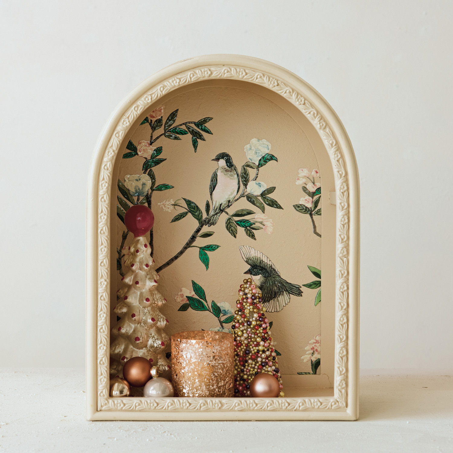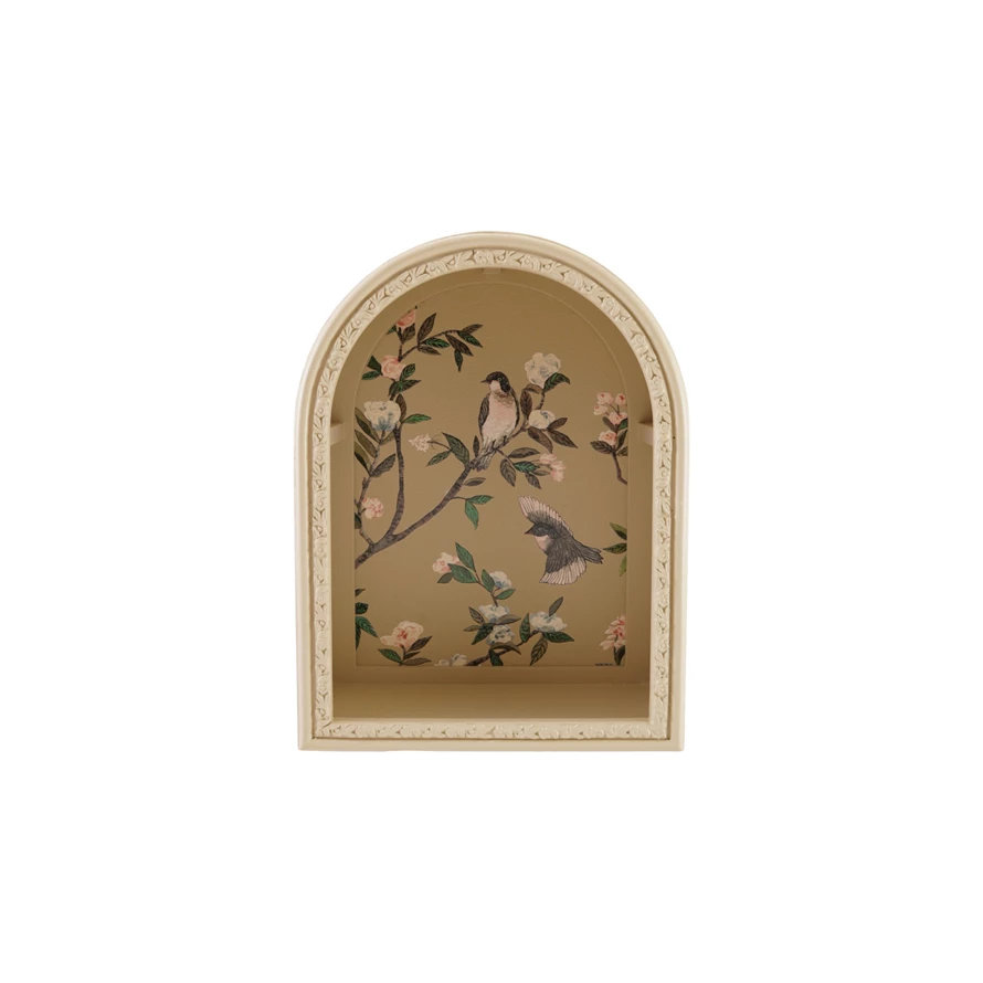 MDF Arched Wall Shelf with Birds & Botanicals (Hangs or Sits)