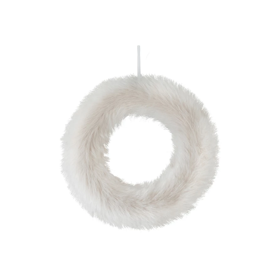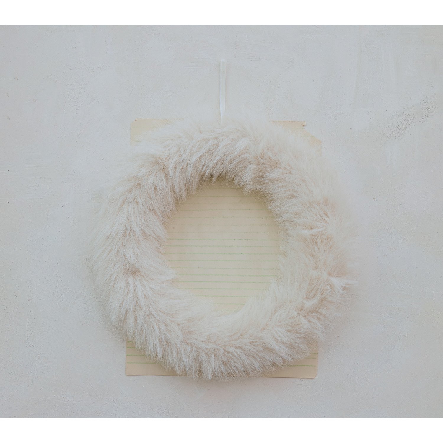 Catalog Name: 14-1/2" Round Foam & Faux Fur Wreath, Cream Color