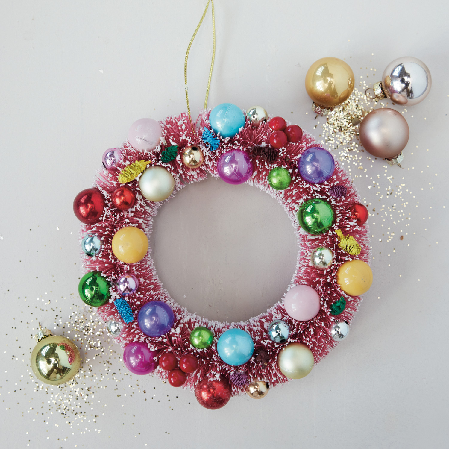 Catalog Name: 8" Round Sisal Wreath w/ Ornaments & Glitter, Multi Color