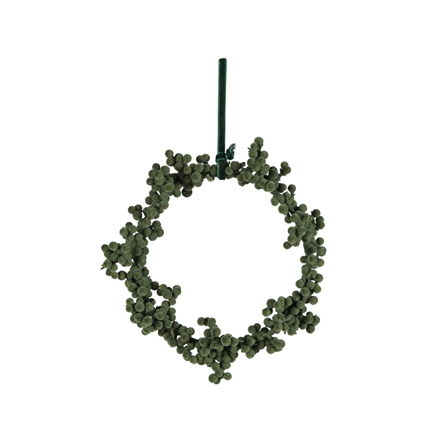 8" Round Flocked Foam Ball Wreath with Velvet Ribbon Hanger, Green