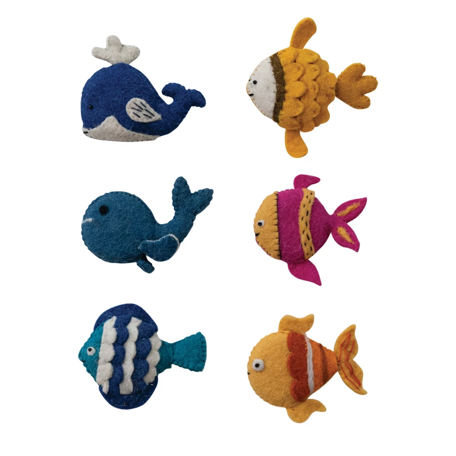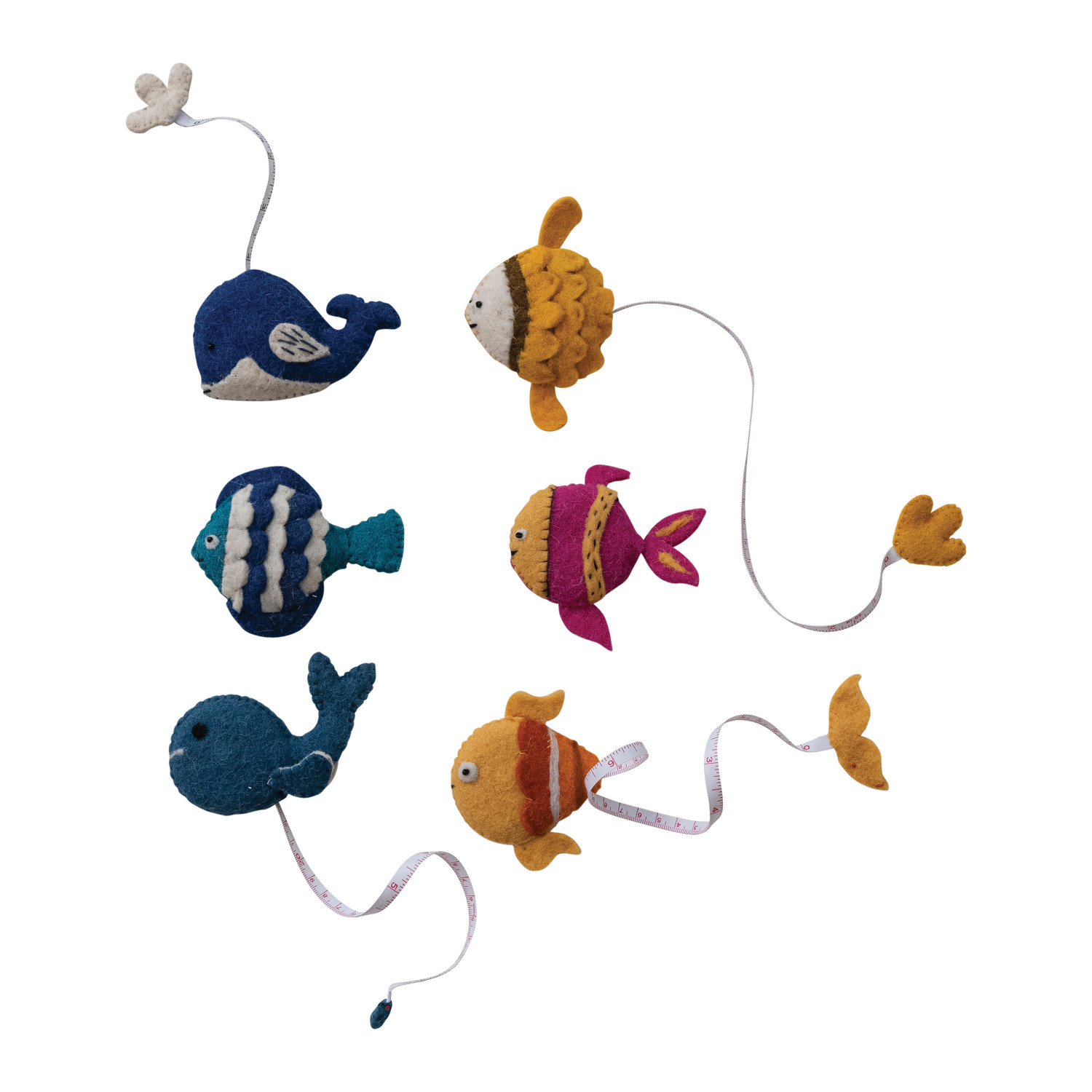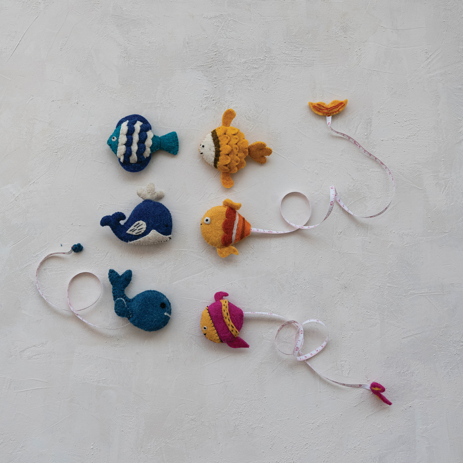 Catalog Name: 3-1/2"L - 4"L Handmade Embroidered Wool Felt Fish/Whale Shaped Tape Measure, Multi Color, 6 Styles (Each Measures 5 Feet)