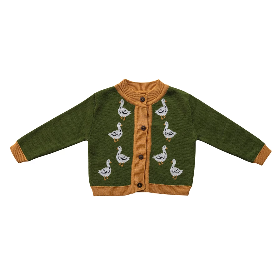 Catalog Name: Cotton Knit Baby Cardigan Sweater w/ Wood Buttons & Ducks, Multi Color, 3 Sizes, Each Tied w/ Twill Tape (0-3 Months, 3-6 Months, 6-9 Months)