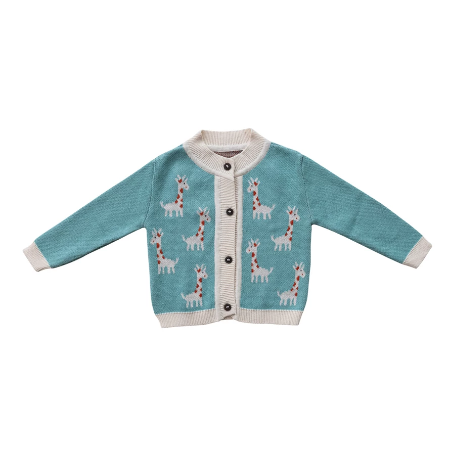 Catalog Name: Cotton Knit Baby Cardigan Sweater w/ Wood Buttons & Giraffes, Multi Color, 3 Sizes, Each Tied w/ Twill Tape (0-3 Months, 3-6 Months, 6-9 Months)
