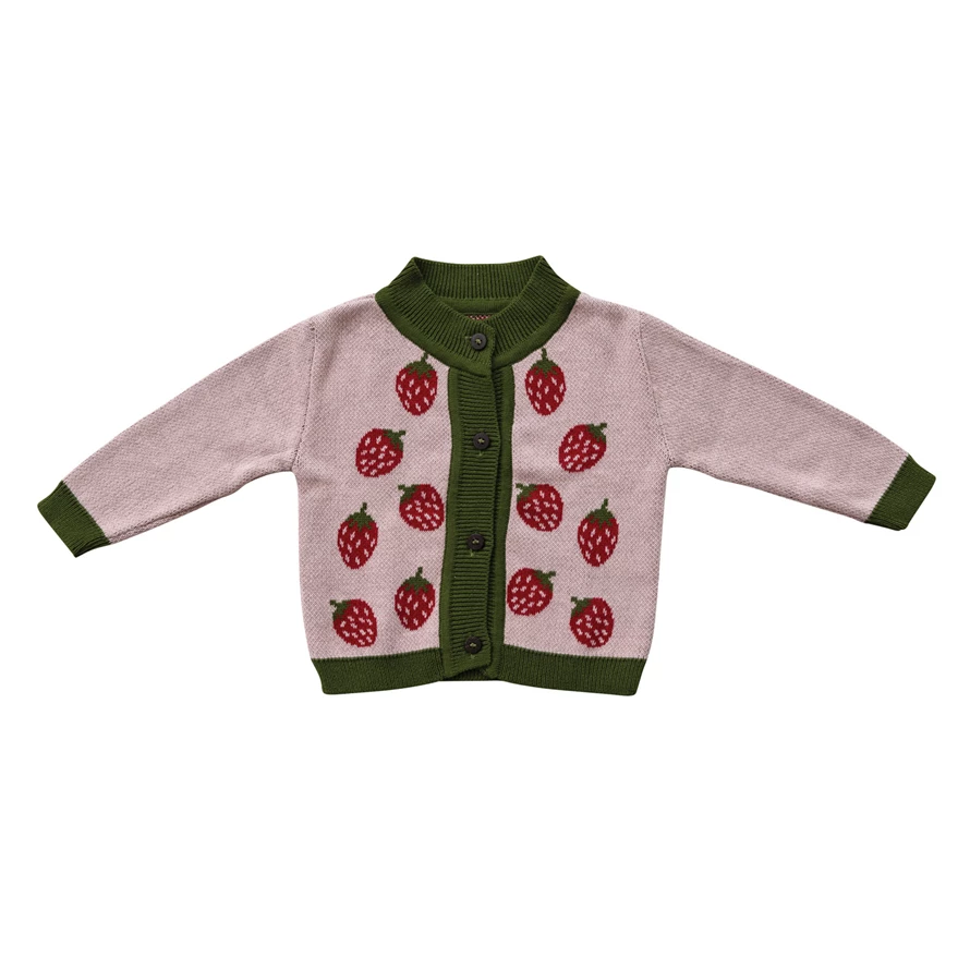 Catalog Name: Cotton Knit Baby Cardigan Sweater w/ Wood Buttons & Strawberries, Multi Color, 3 Sizes, Each Tied w/ Twill Tape (0-3 Months, 3-6 Months, 6-9 Months)