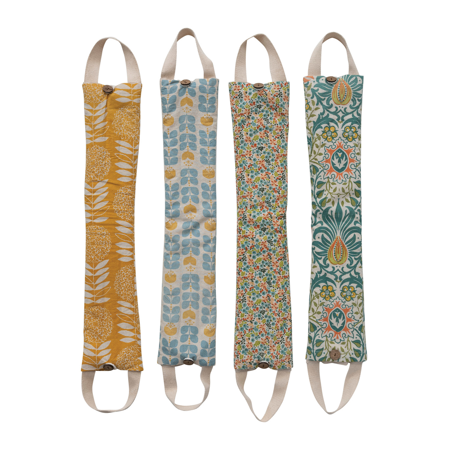 Catalog Name: 22"L x 5"W Microwaveable Hot/Cold Neck Wrap w/ Handles, Coconut Shell Buttons & Cotton Printed Cover Filled w/ Natural Lentils & Lavender in Drawstring Bag, Multi Color, 4 Styles