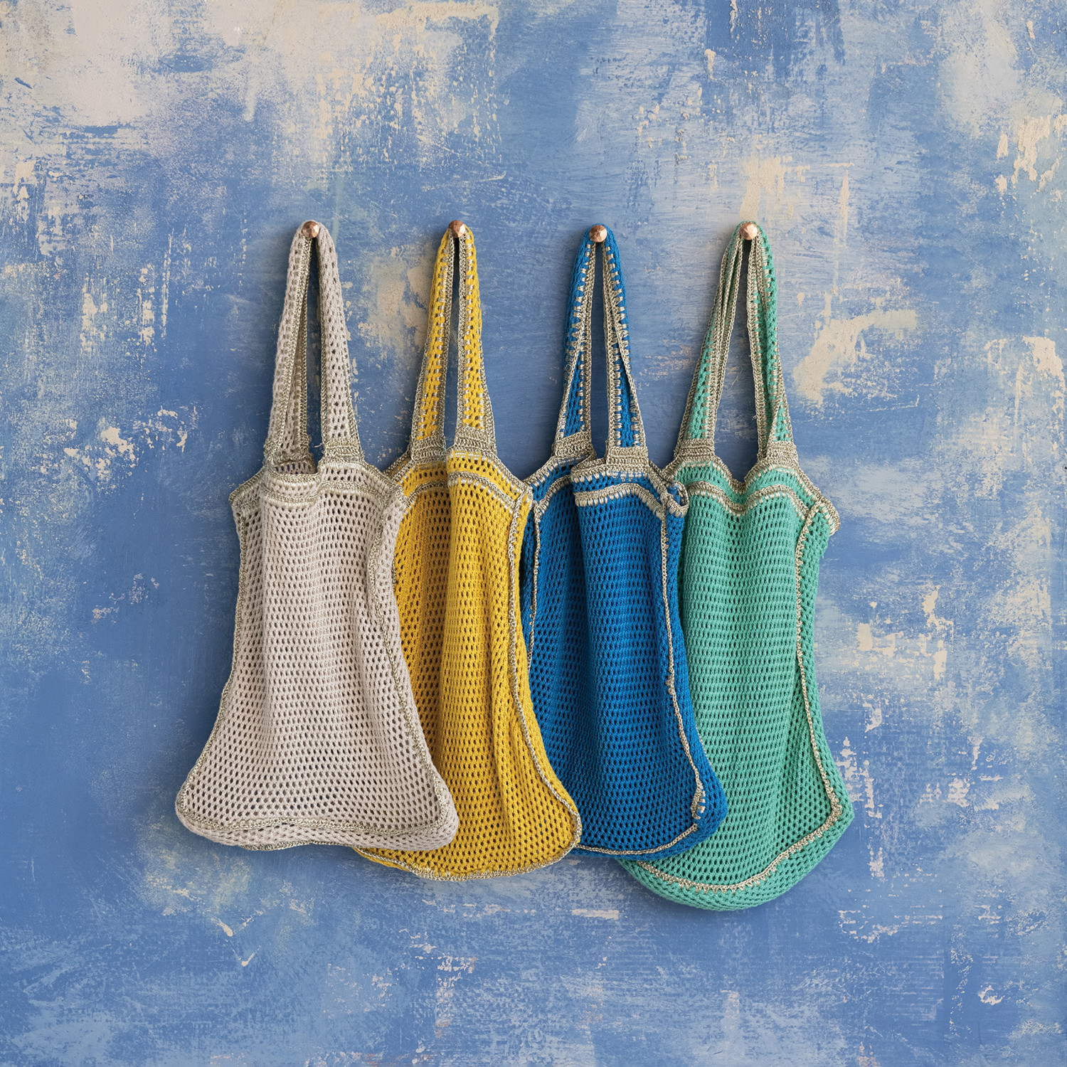 Cotton Blend Crocheted Tote Bag, 4 Colors