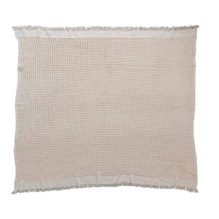 Cotton Waffle Weave Throw w/ Fringe