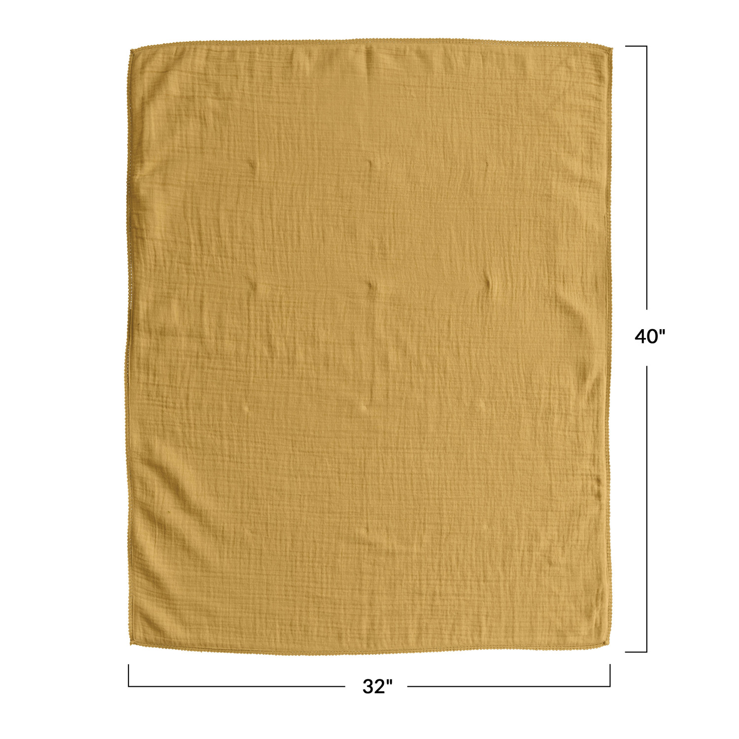 Catalog Name: 40"L x 32"W Cotton Double Cloth Baby Blanket w/ Trim in Bag, Yellow