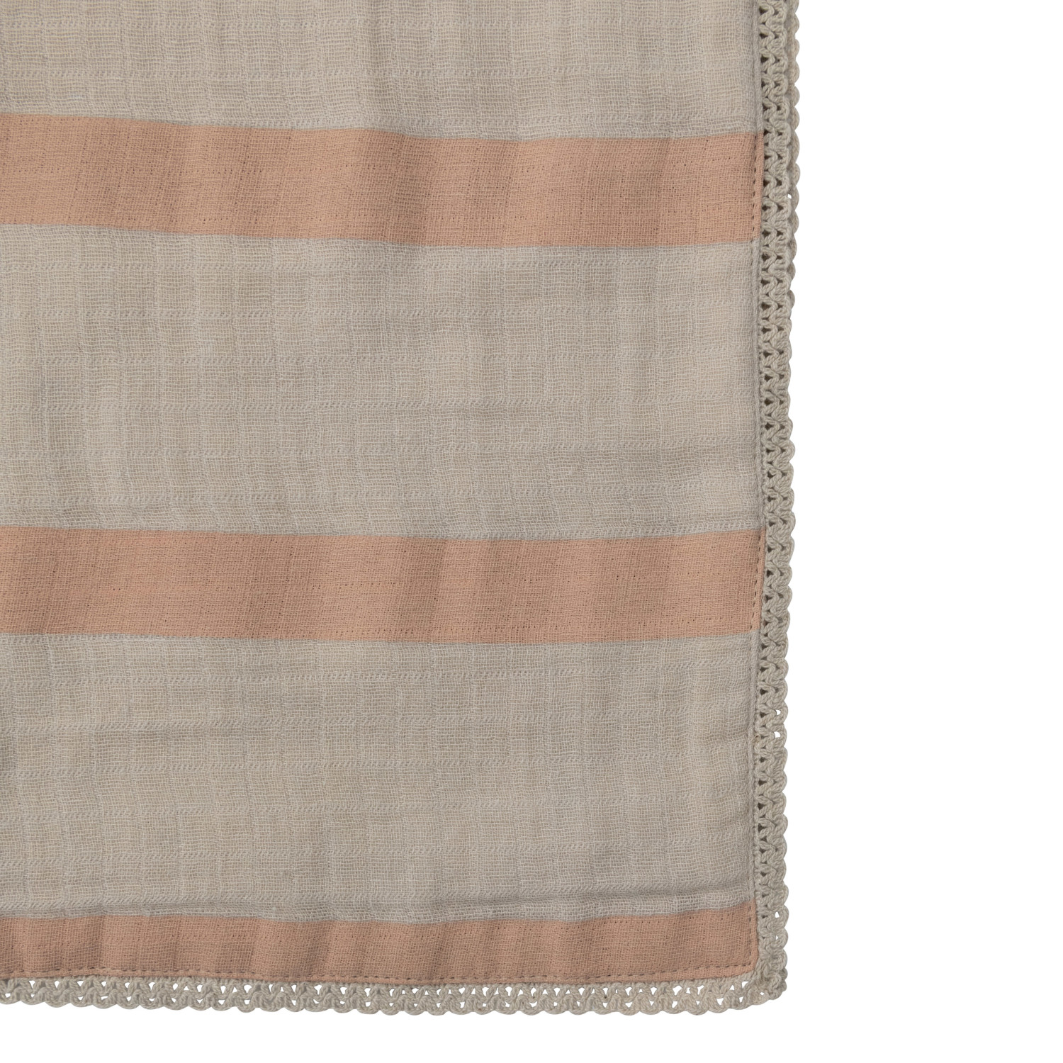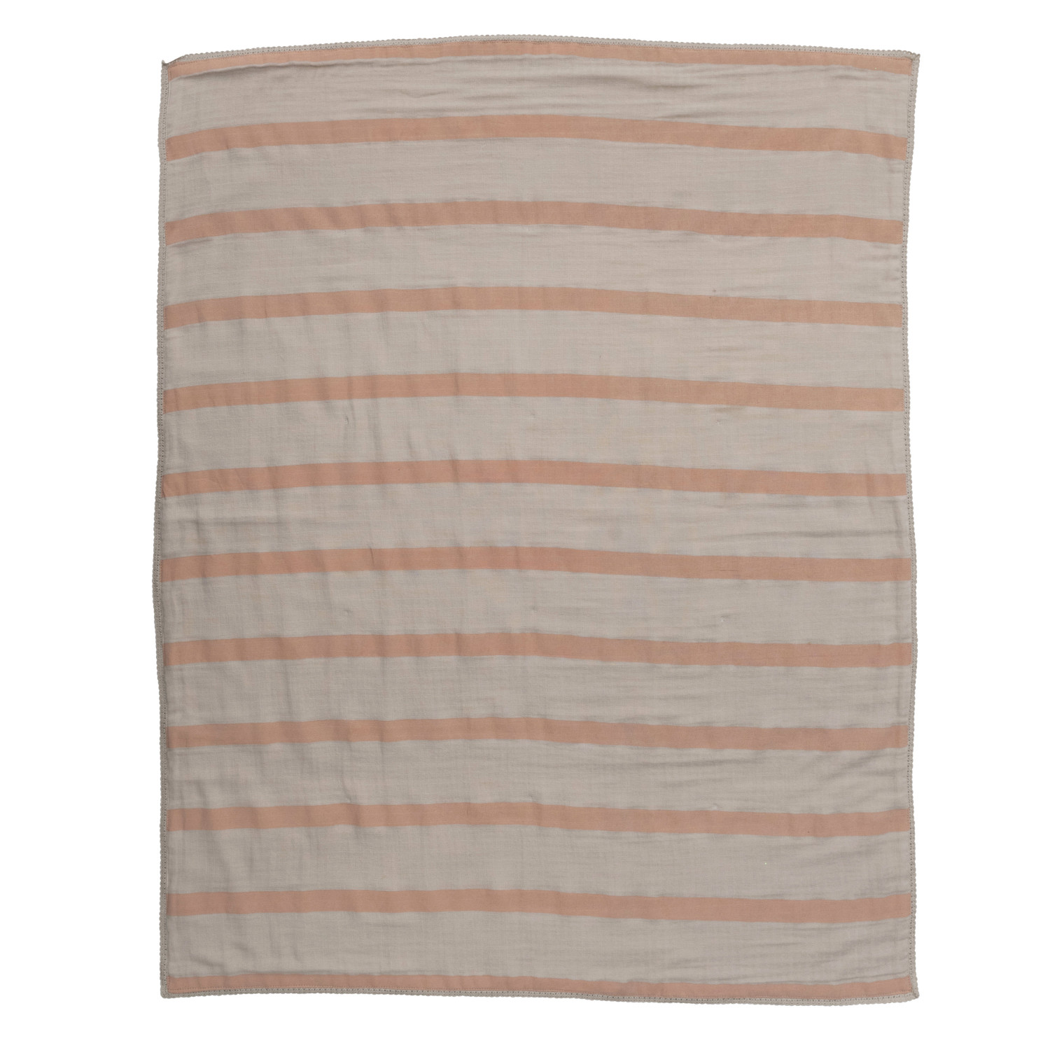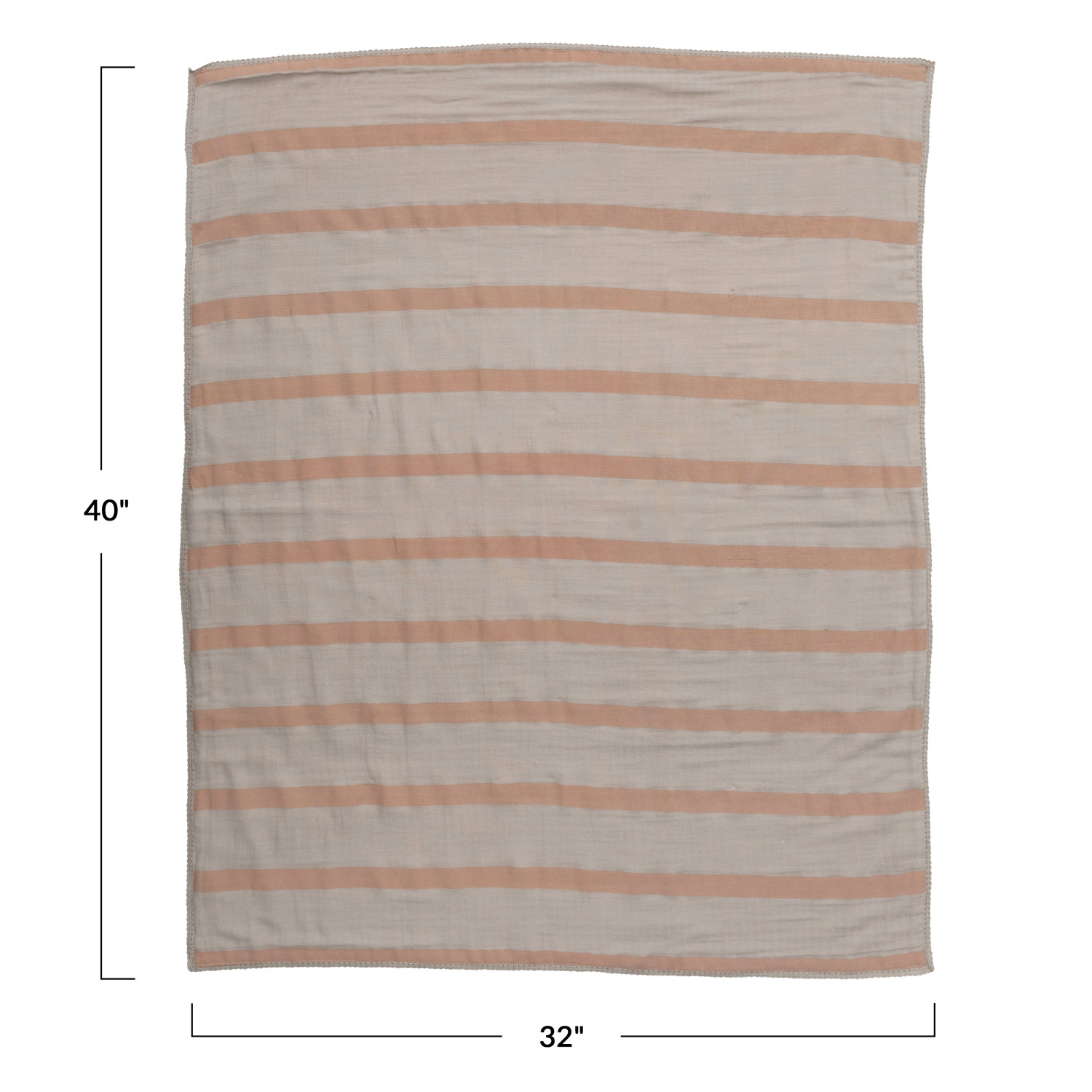 Catalog Name: 40"L x 32"W Cotton Double Cloth Printed Baby Blanket w/ Stripes in Bag, Cream & Rose Color