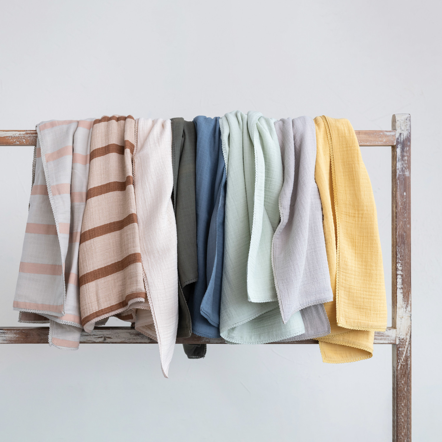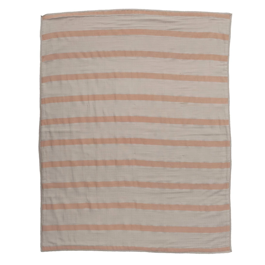 This darling baby blanket features supple cotton double cloth with 2-tone stripes in bag. Machine Wash Cold.