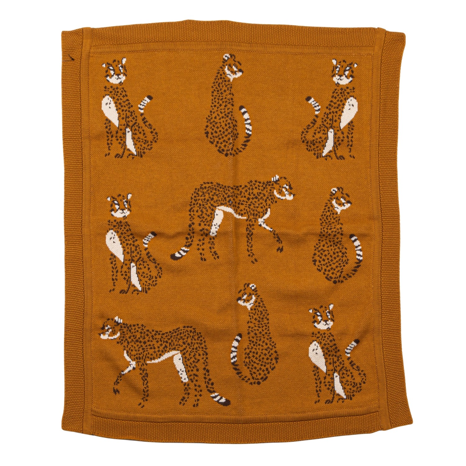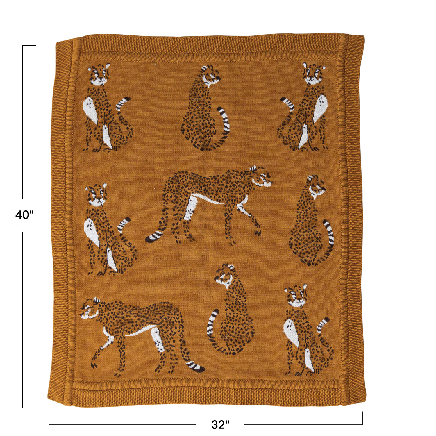 Catalog Name: 40"L x 32"W Cotton Knit Baby Blanket w/ Cheetahs, Mustard Color, Black & White