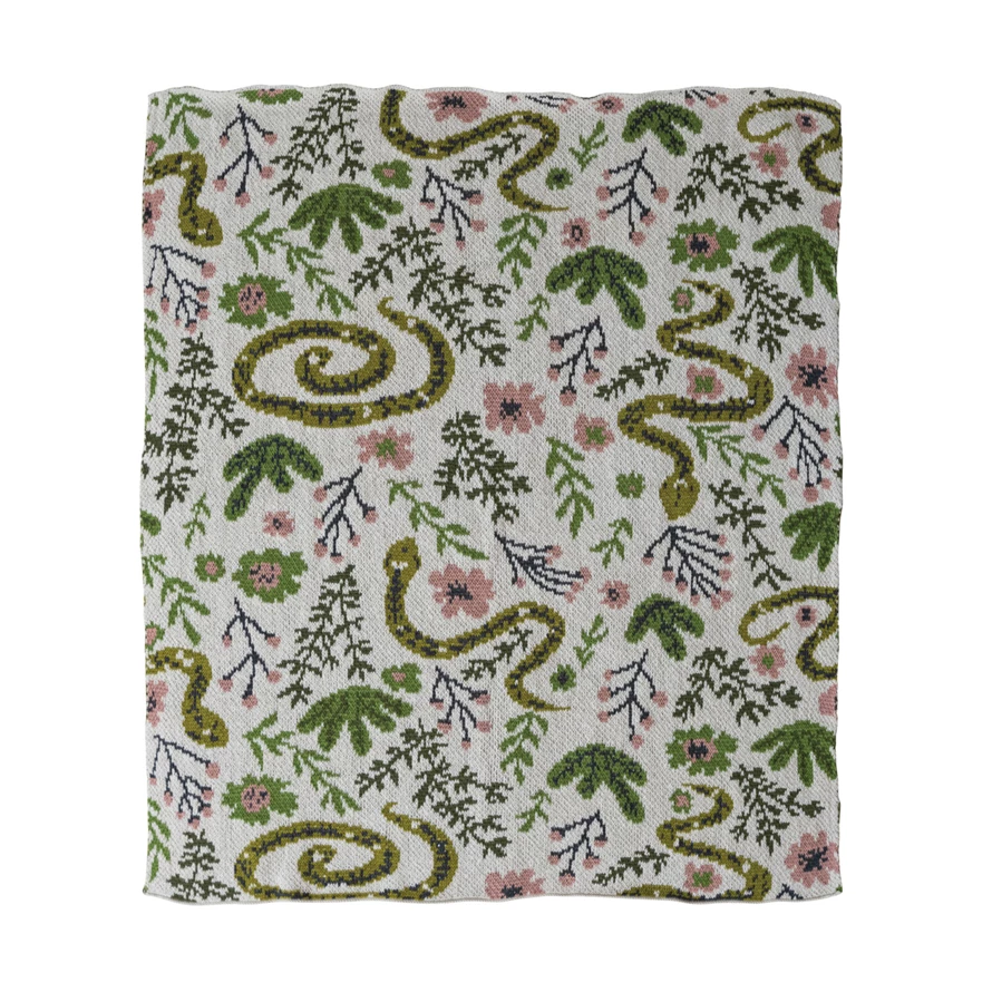 Catalog Name: 40"L x 32"W Cotton Knit Baby Blanket w/ Snakes & Florals, Multi Color