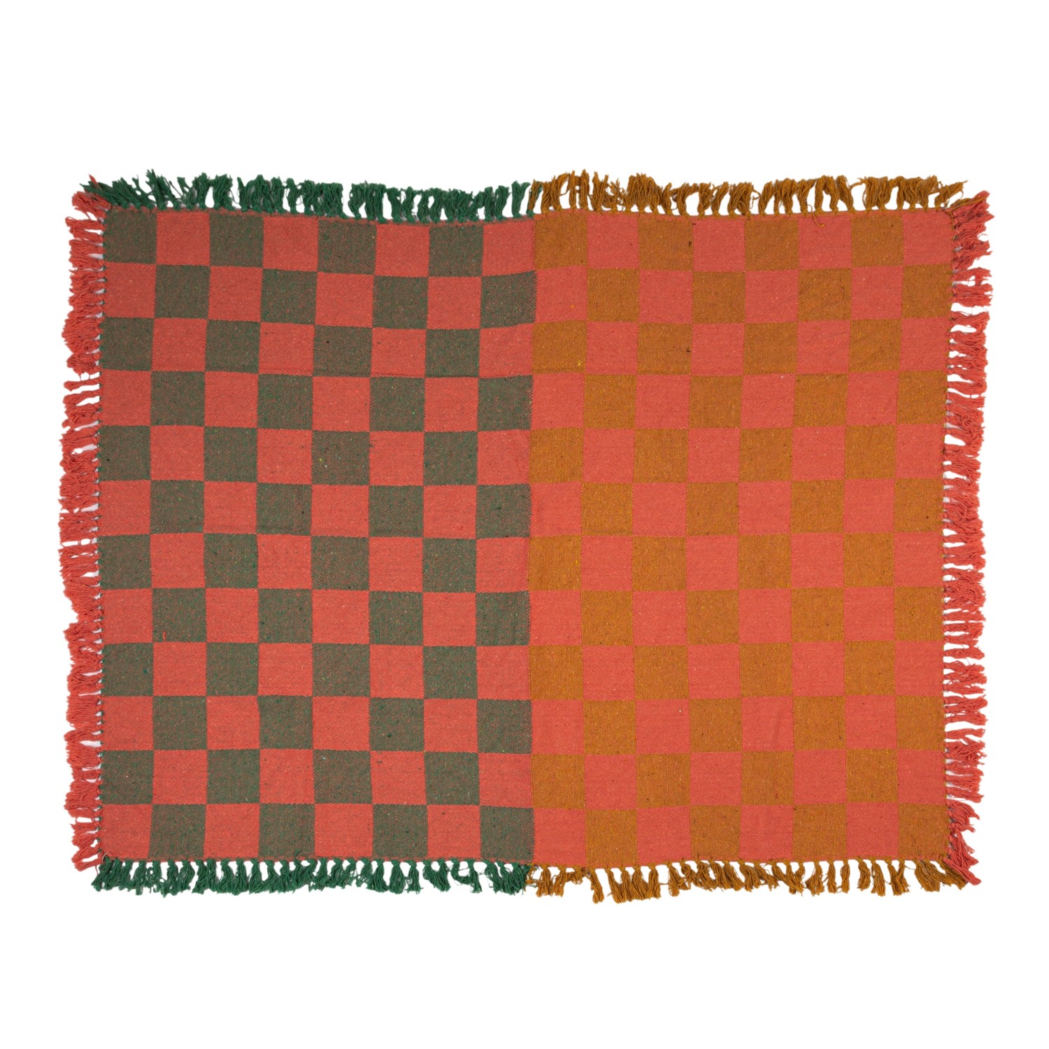 Woven Recycled Cotton Blend Two-Tone Checked Throw with Fringe