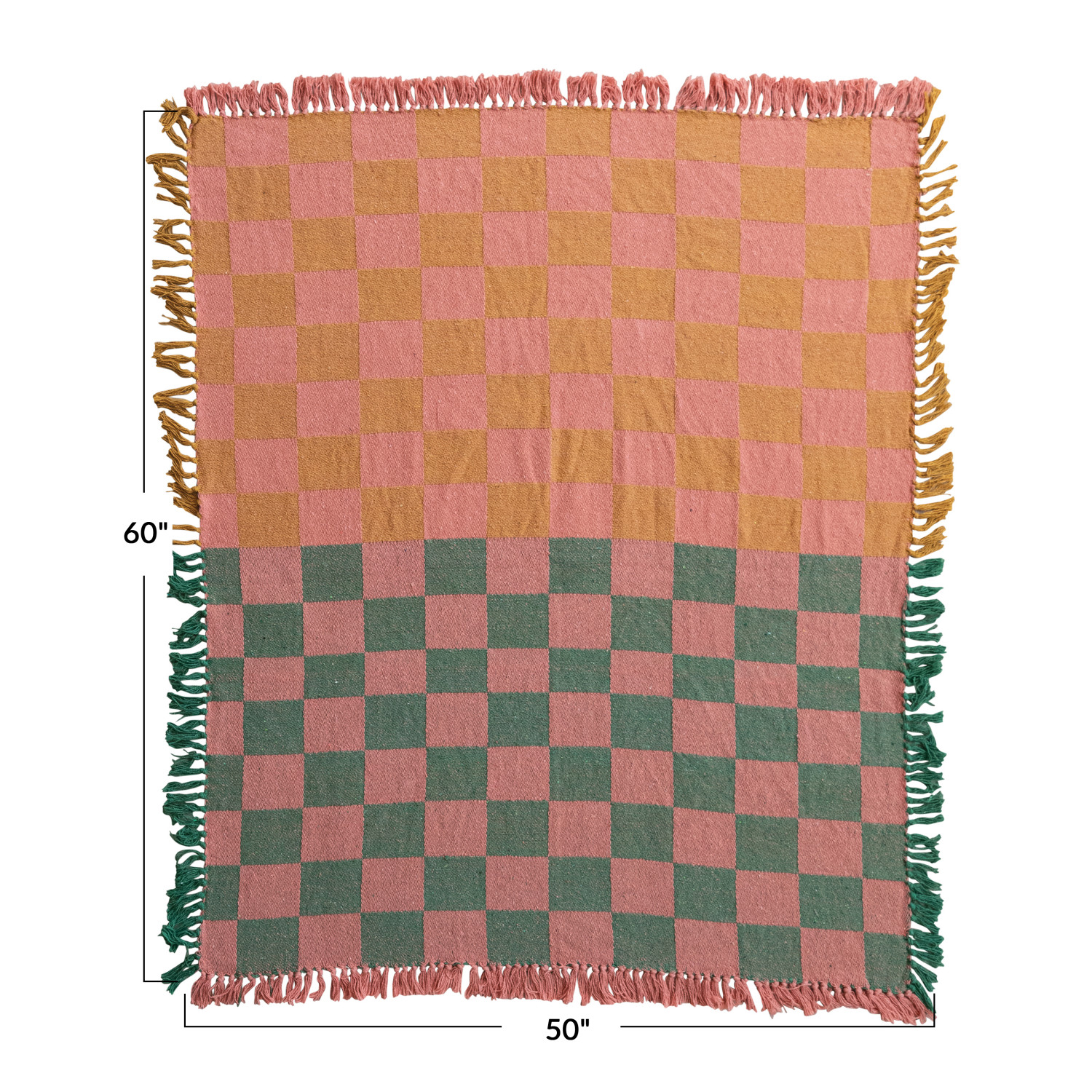 Catalog Name: 60"L x 50"W Woven Recycled Cotton Blend Two-Tone Checked Throw w/ Fringe, Multi Color