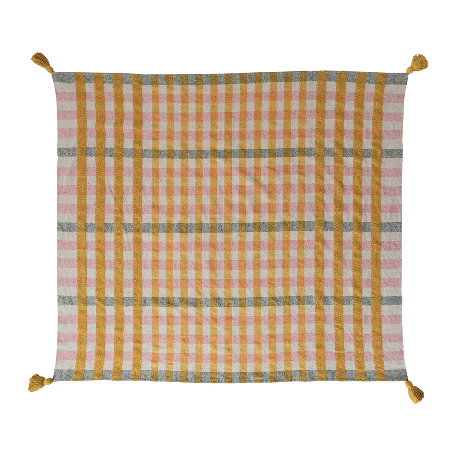 Woven Recycled Cotton Jacquard Throw w/ Tassels Plaid