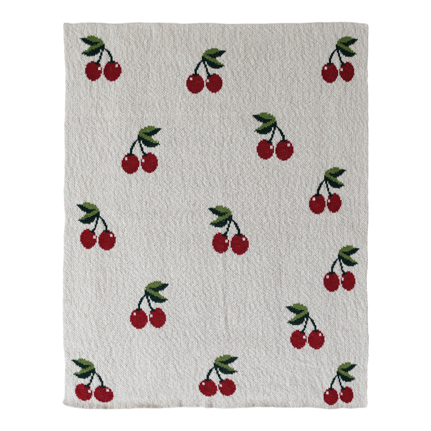 Cotton Knit Baby Blanket with Cherries, Cream Color, Red & Green