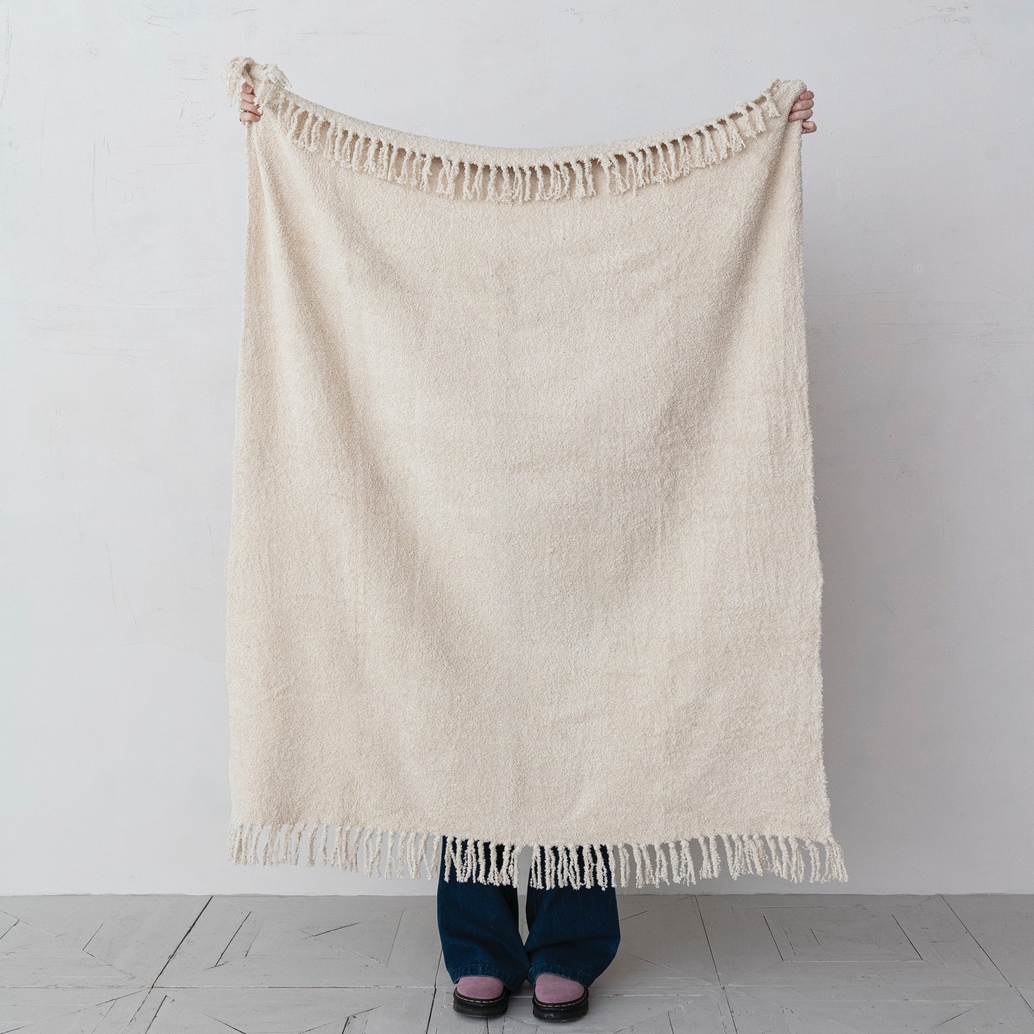 60"L x 50"W Woven Cotton Chenille Throw with Fringe, Natural