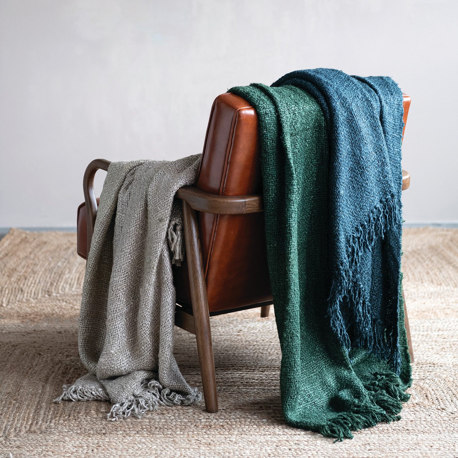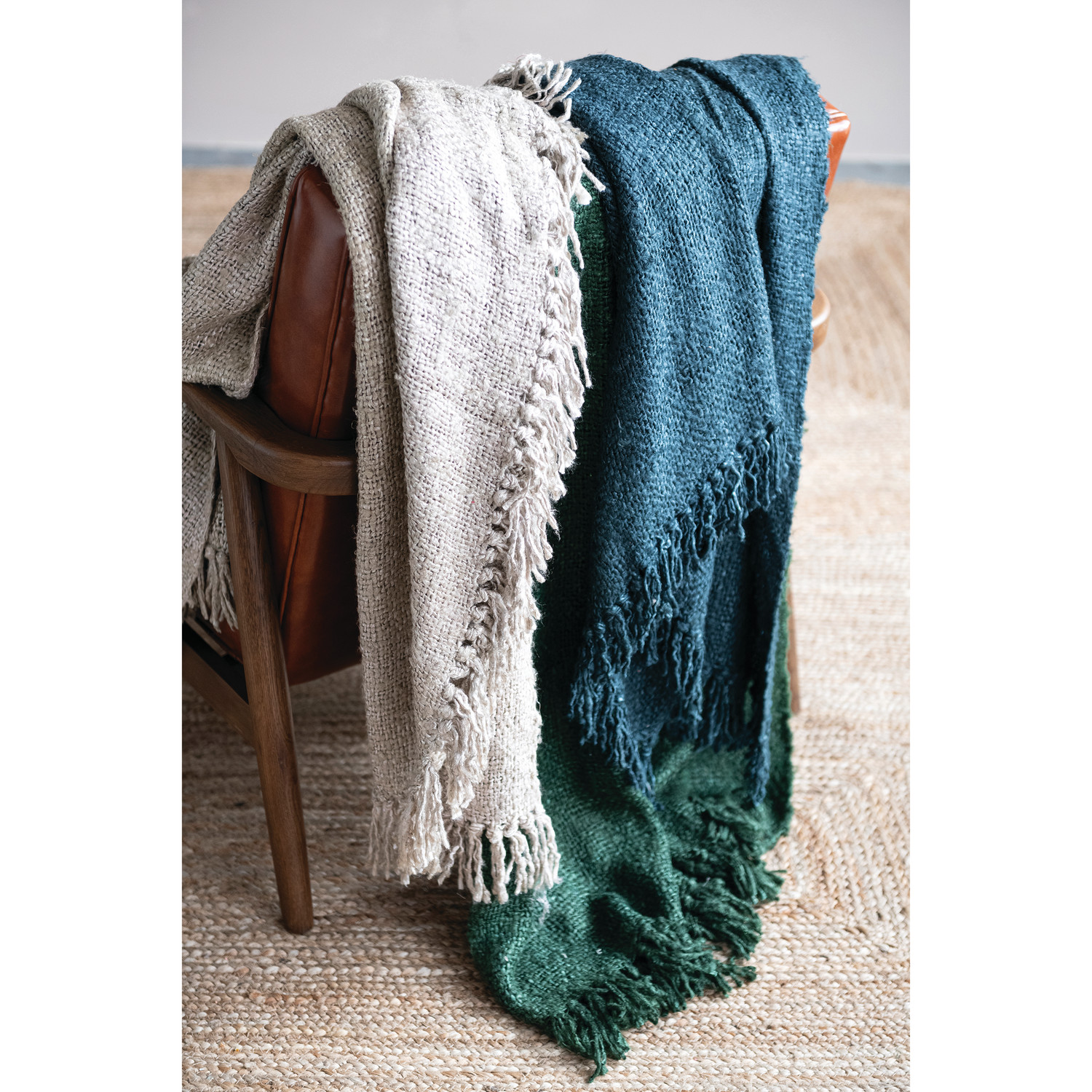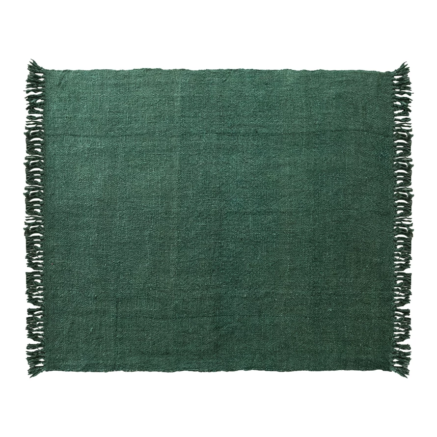 Catalog Name: 60"L x 50"W Woven Viscose Throw w/ Fringe, Green
