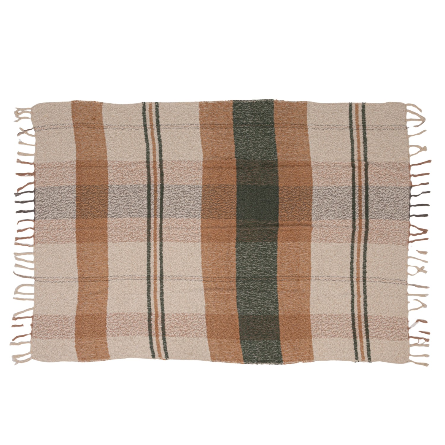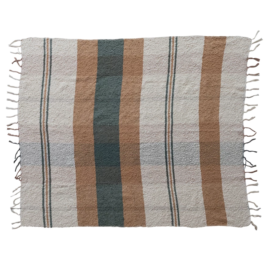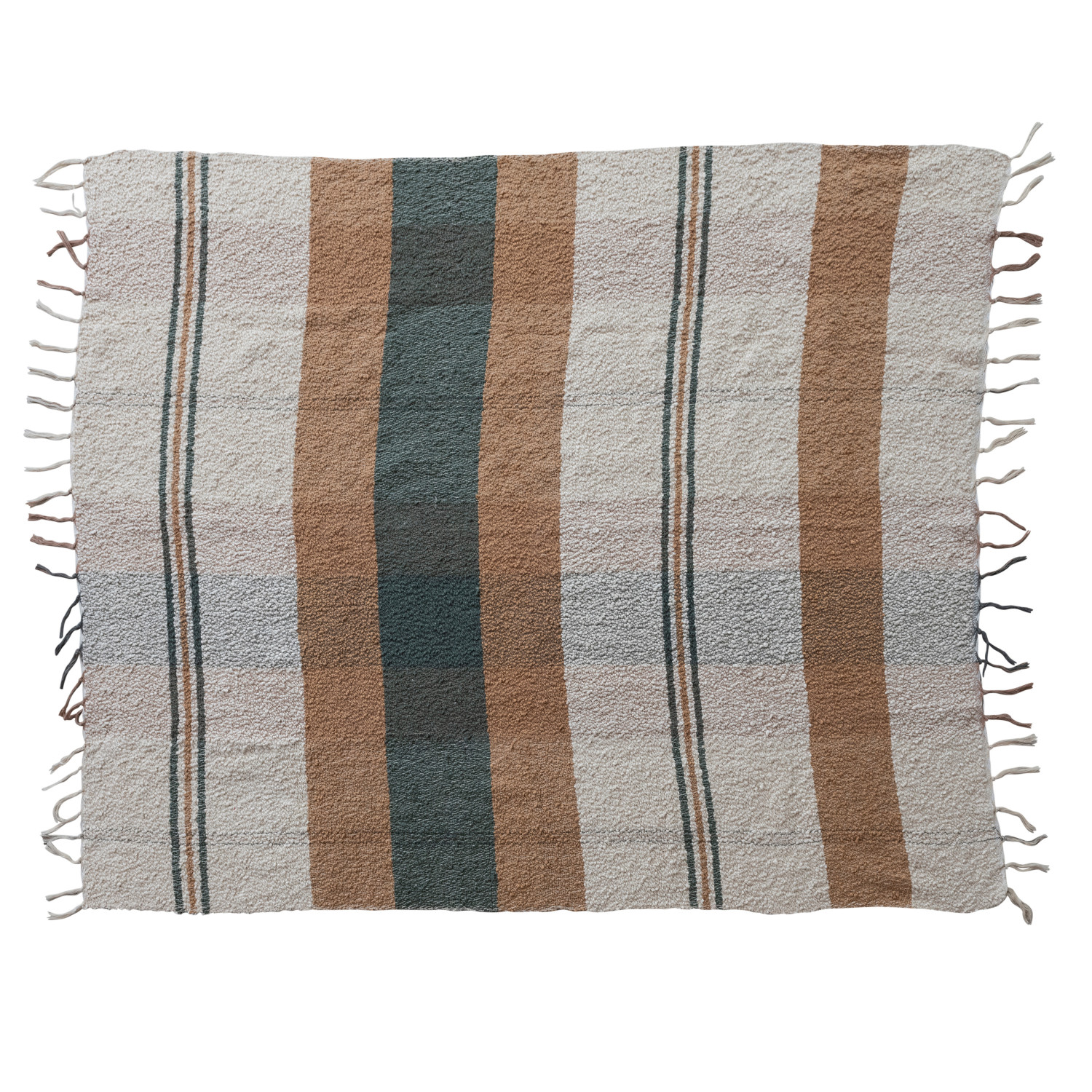 60"L x 50"W Hand-Woven Cotton Slub Striped Throw with Fringe