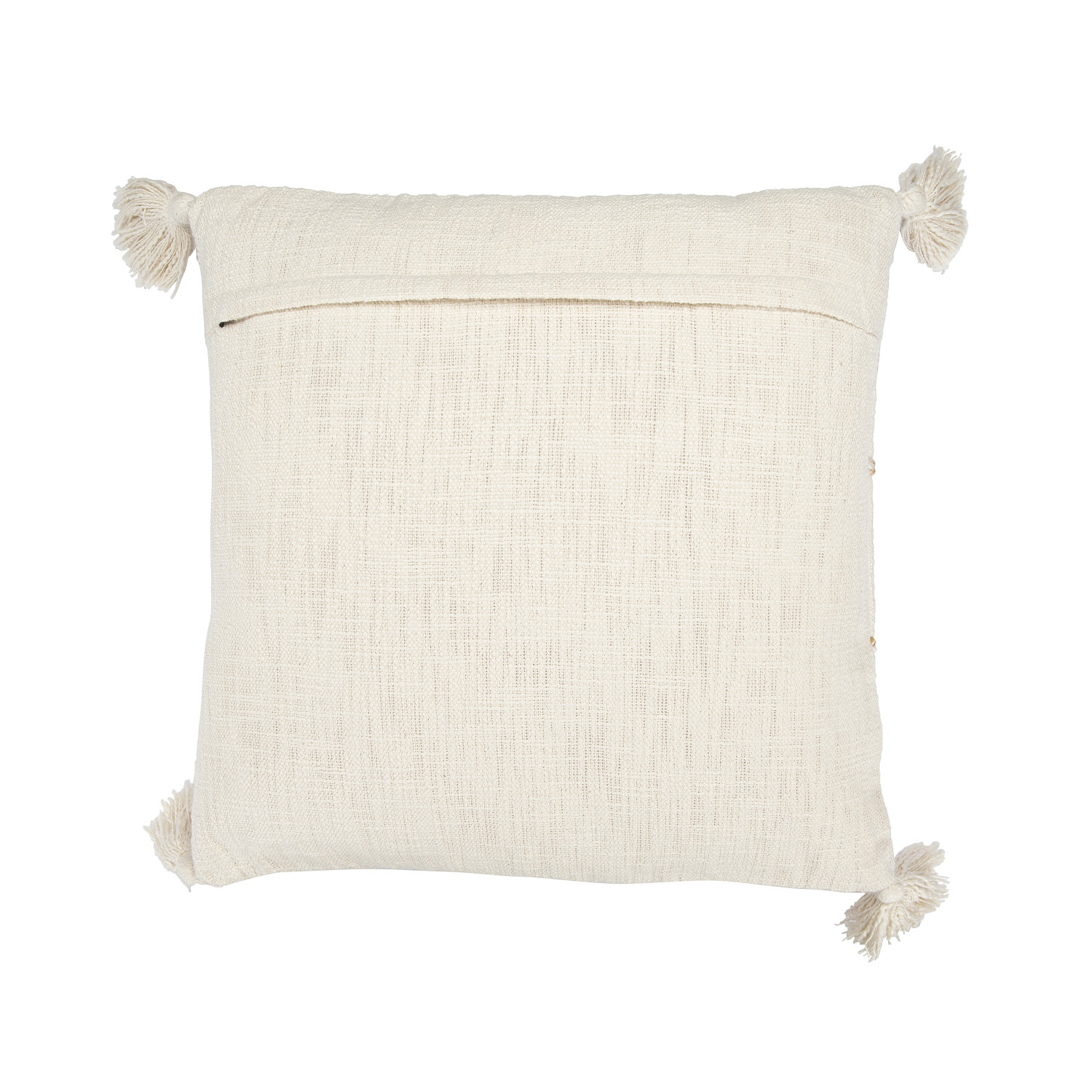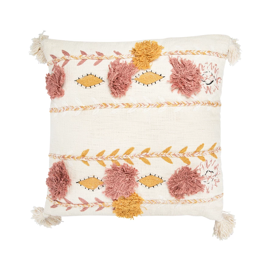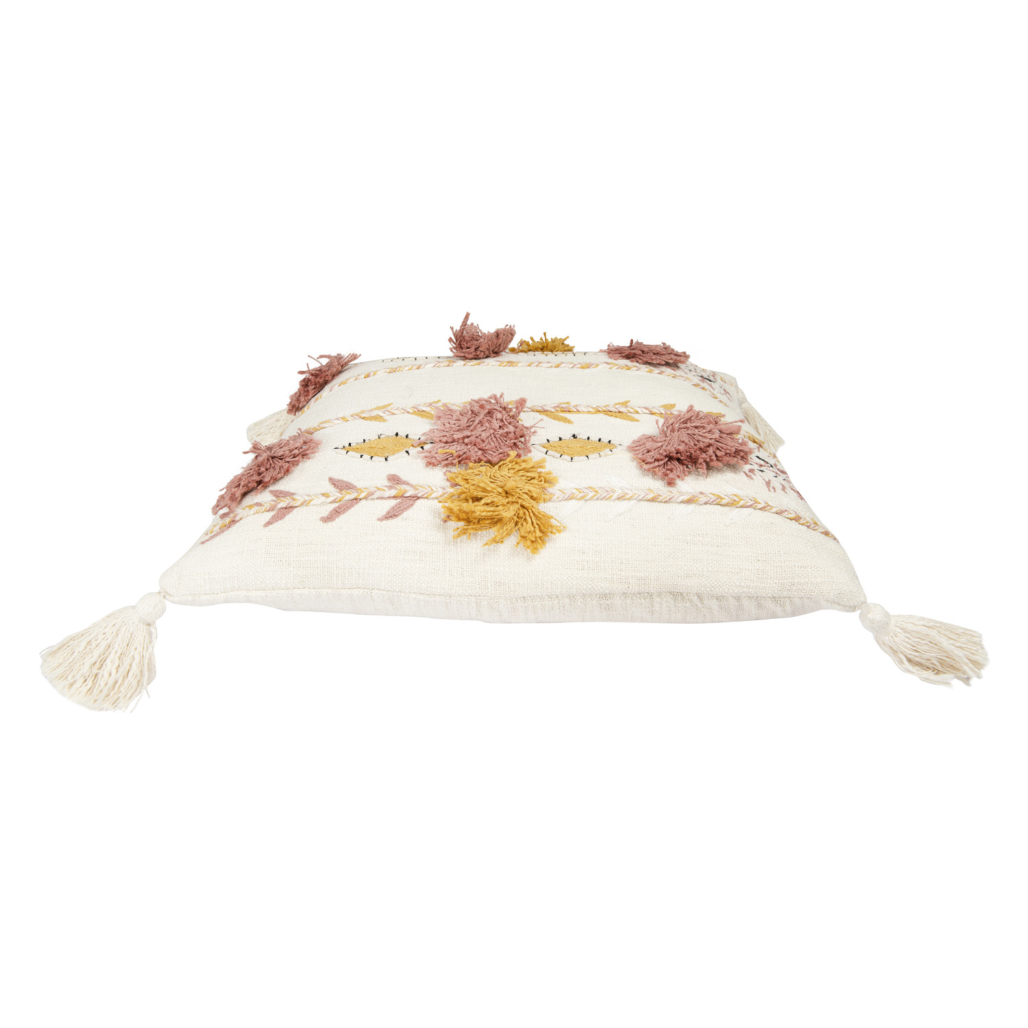 Catalog Name: 20" Square Cotton Pillow w/ Embroidery, Tassels & Applique, Cream Color