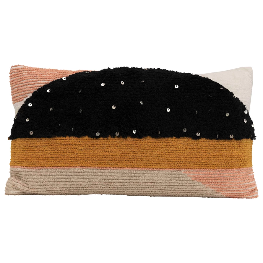 28" x 16" Cotton Lumbar Pillow with Sequins