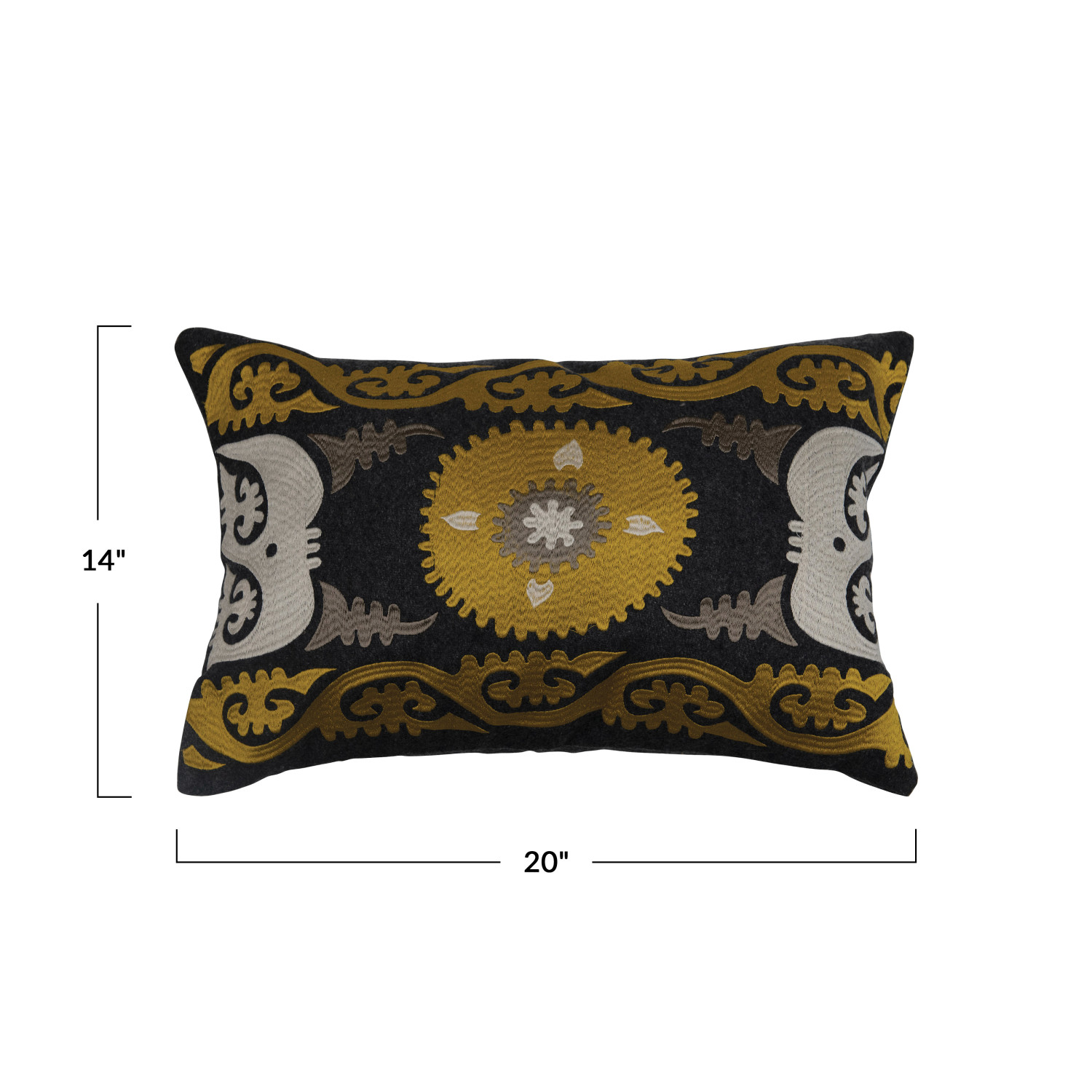 20" x 14" Wool Blend Embroidered Lumbar Pillow