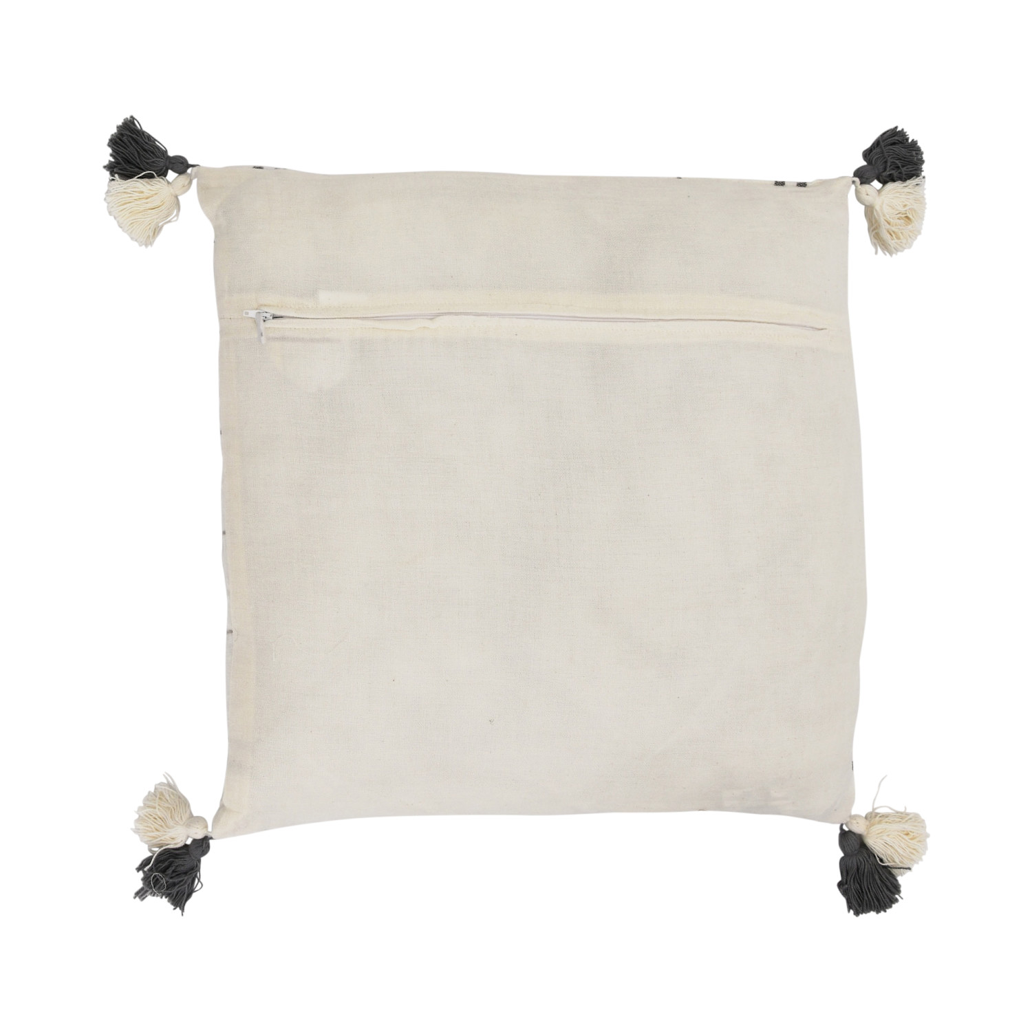 Catalog Name: 20" Square Linen Blend Pillow w/ Grid Pattern & Tassels, Cream Color & Black