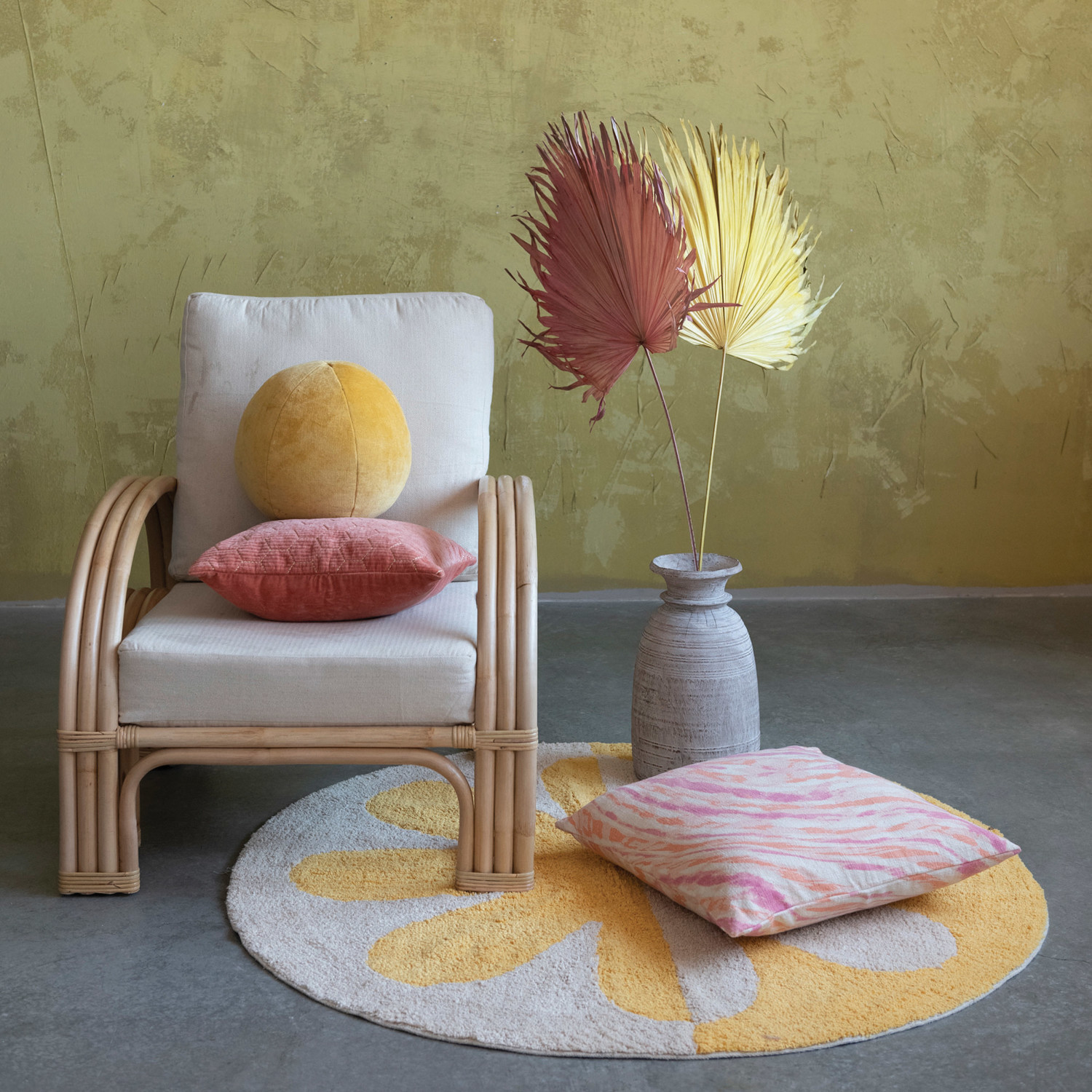 This whimsical throw pillow cover showcases a multicolor marbled design on cotton slub. Square cotton slub throw pillow with pink and tangerine marbled design. Express your constantly evolving style with the simple addition of this eye-catching pillow. Removable cotton pillow cover with polyester insert; Machine wash cold, gentle cycle; Do not bleach, warm iron if needed.