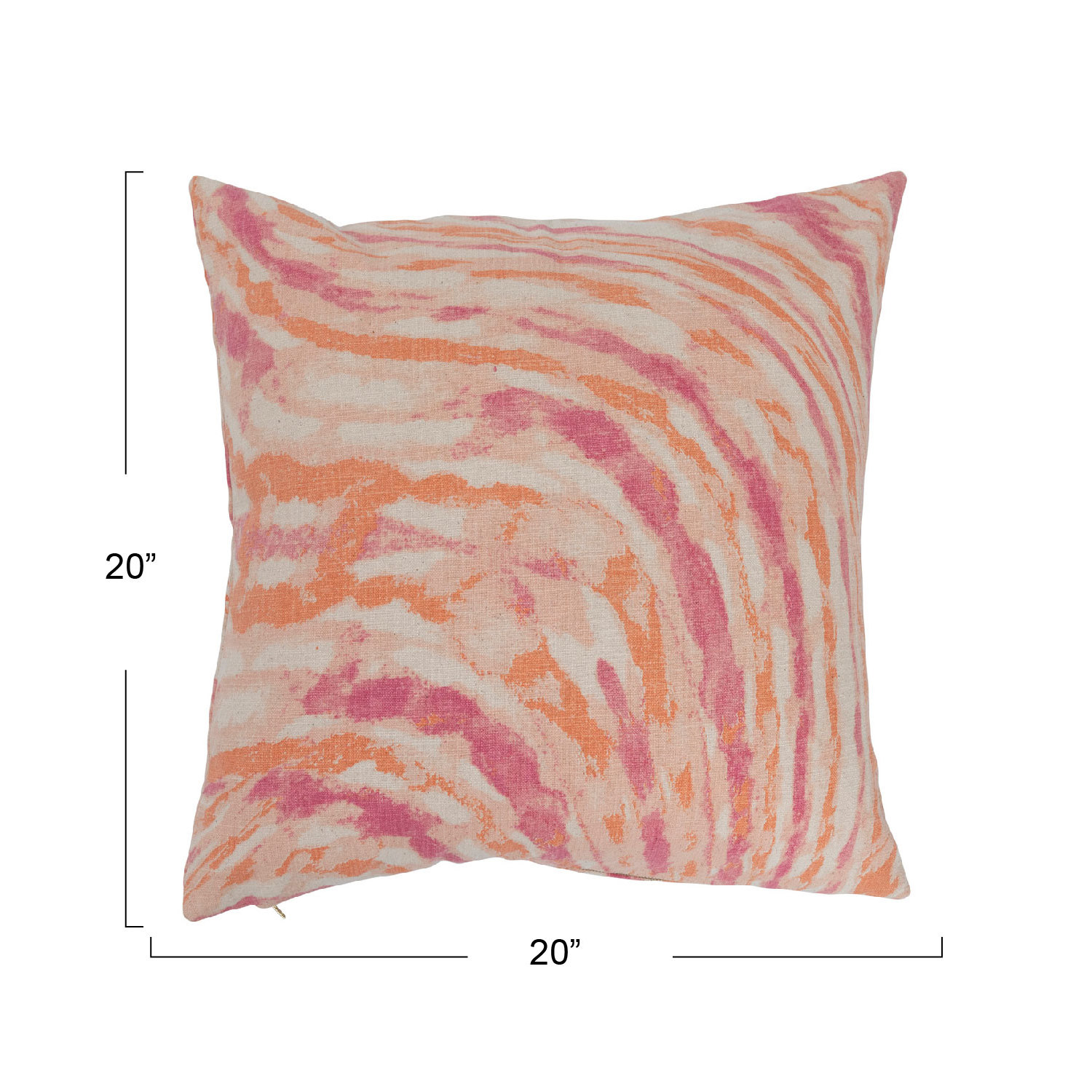 Catalog Name: 20" Square Cotton Slub Marble Printed Pillow, Pink & Tangerine Color